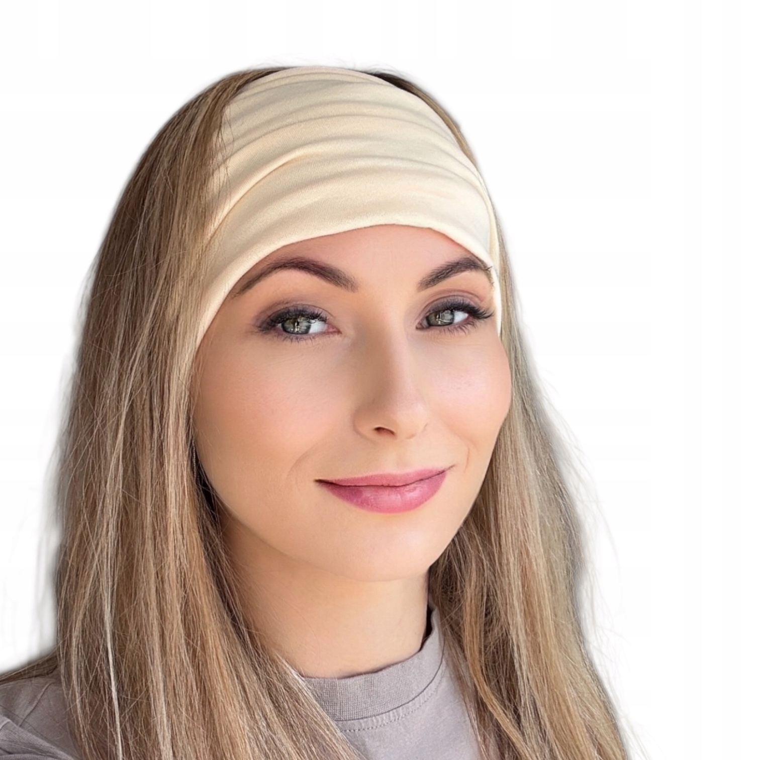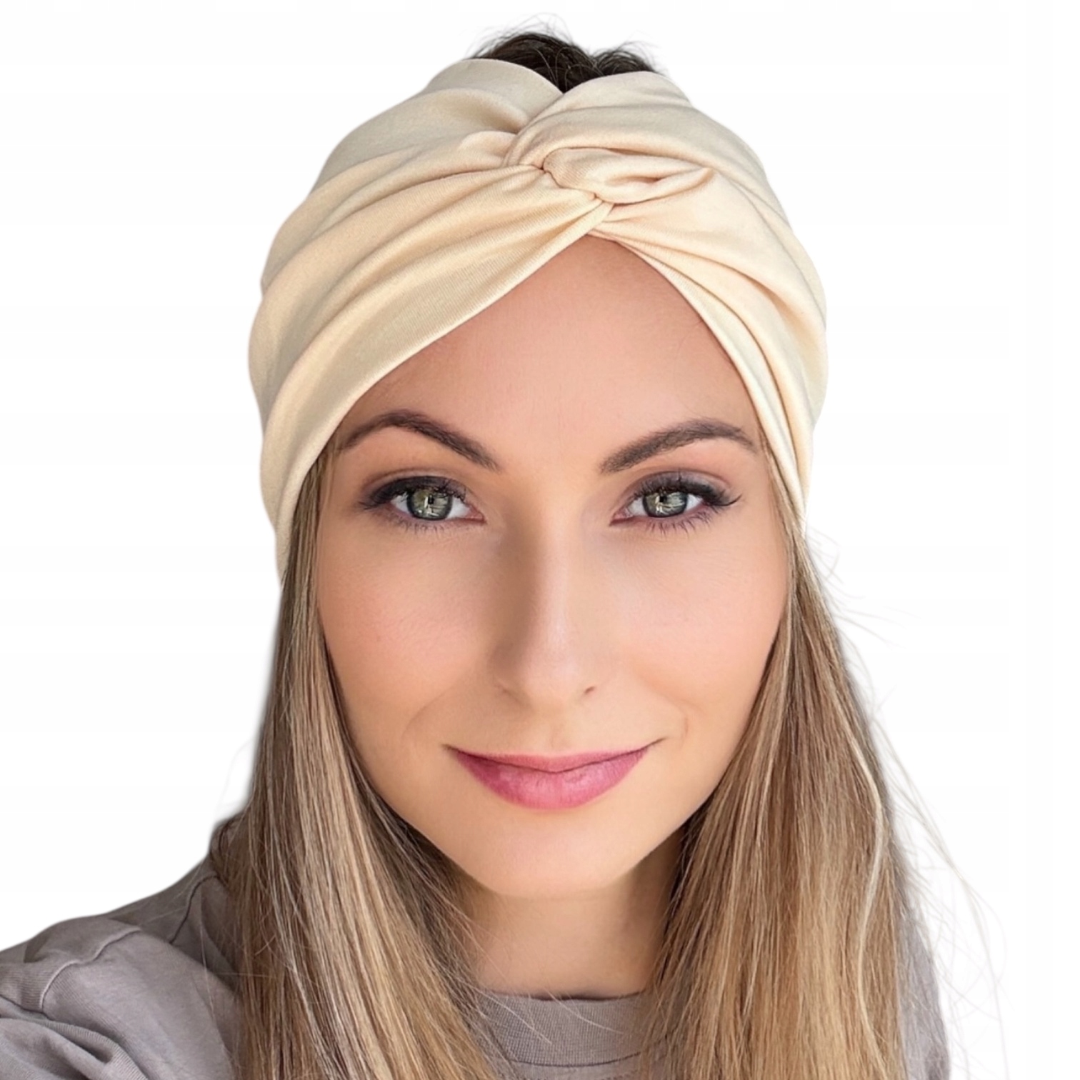 Beżowa opaska turban – miękka, elastyczna i kobieca