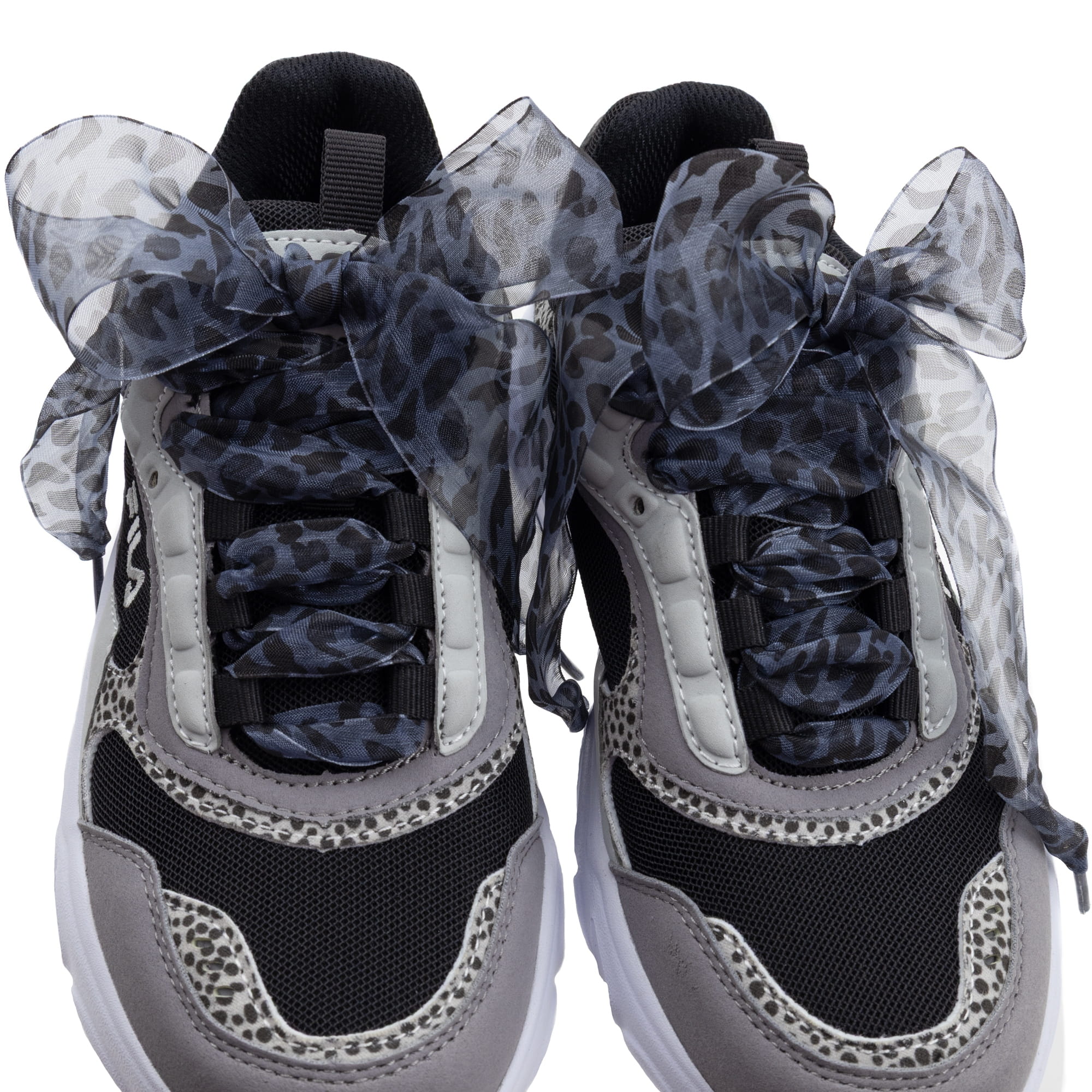 Sznurówki w panterkę – ozdobne, tiulowe, 120 cm – para