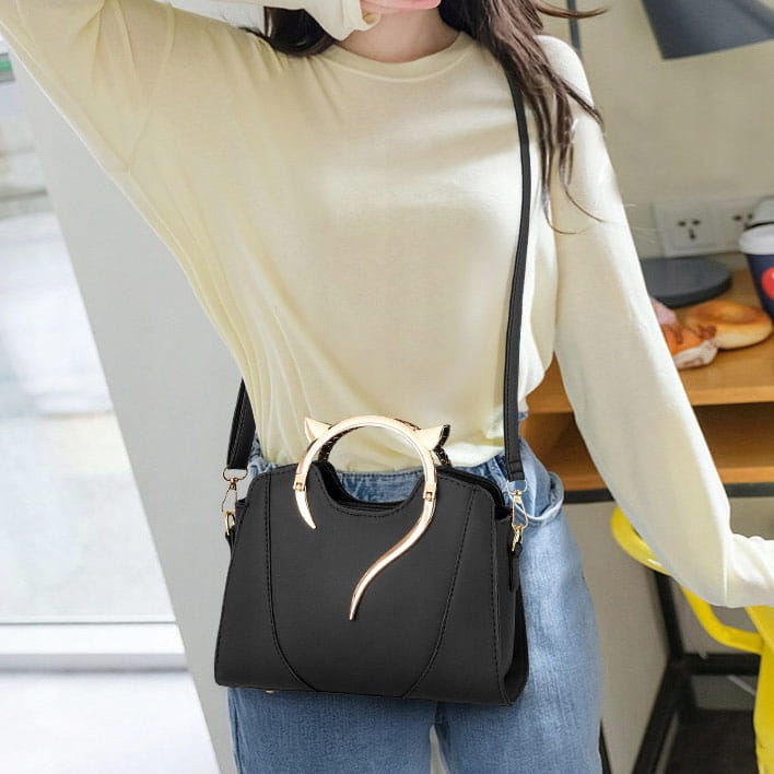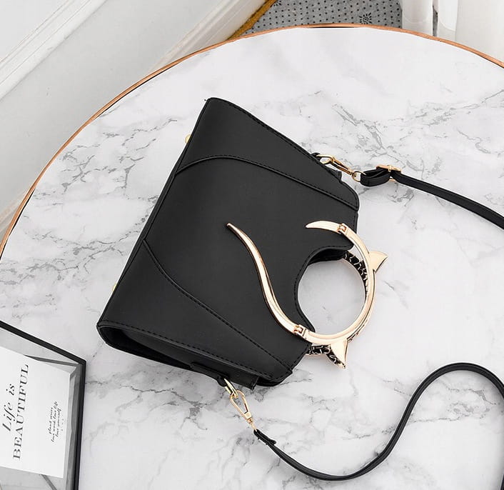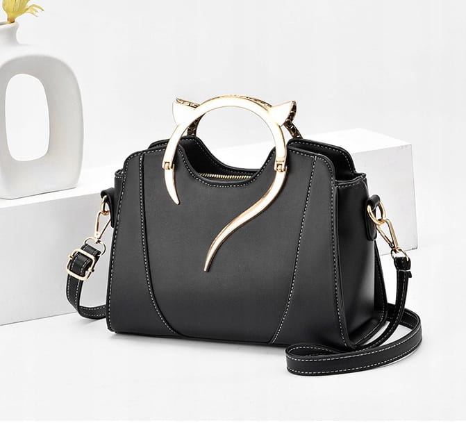 Torebka czarna kocie uszy Eko skóra Kuferek Kot