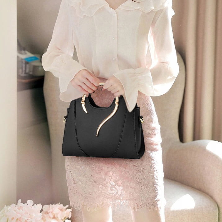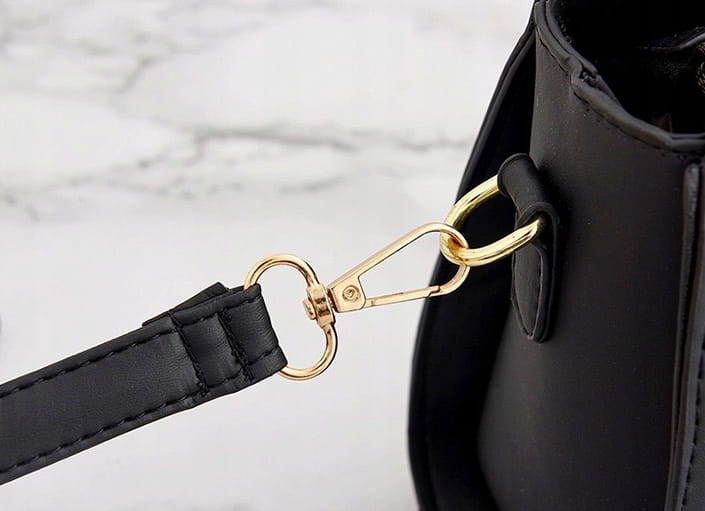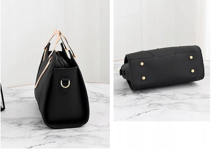 Stylowy kuferek starannie wykonany ze skóry ekologicznej w kolorze czarnym.