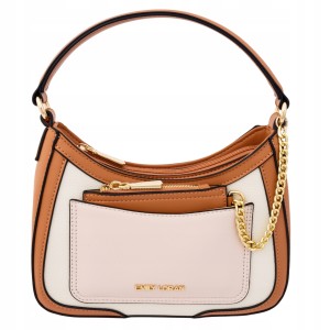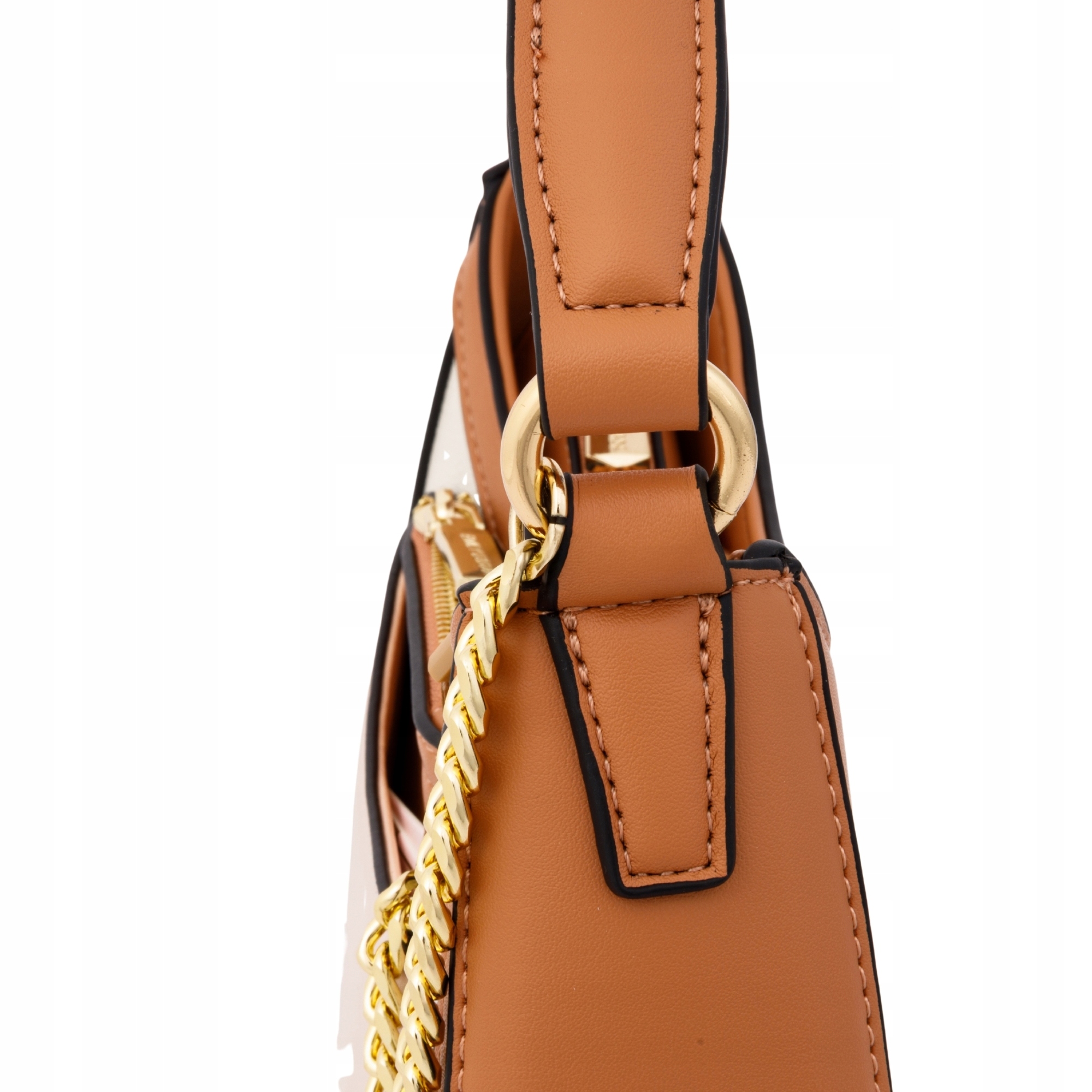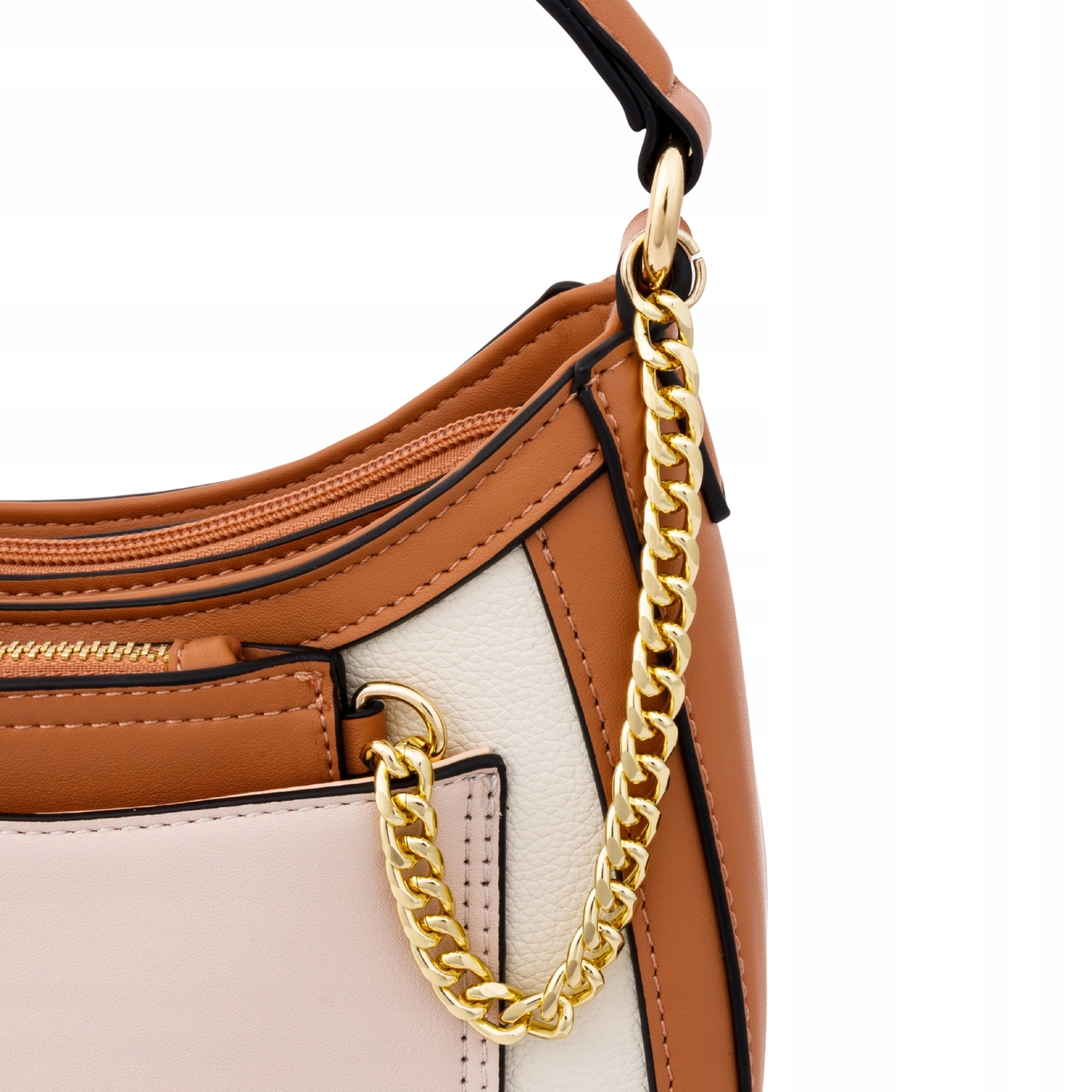 Torebka damska EMILY LORAN - beżowo-karmelowa z łańcuszkiem i portmonetką