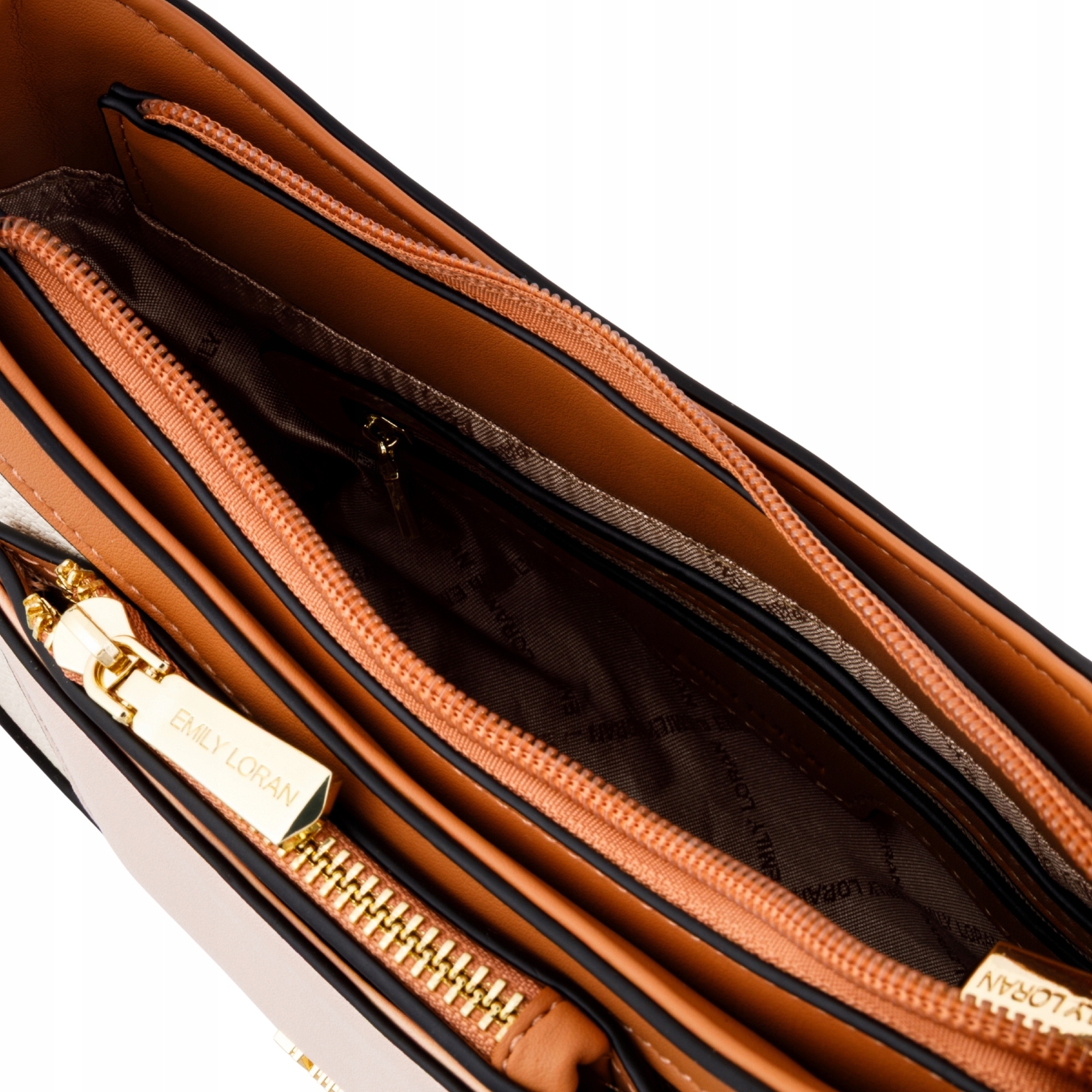 Elegancka torebka damska EMILY LORAN – beżowo-karmelowa z łańcuszkiem i portmonetką