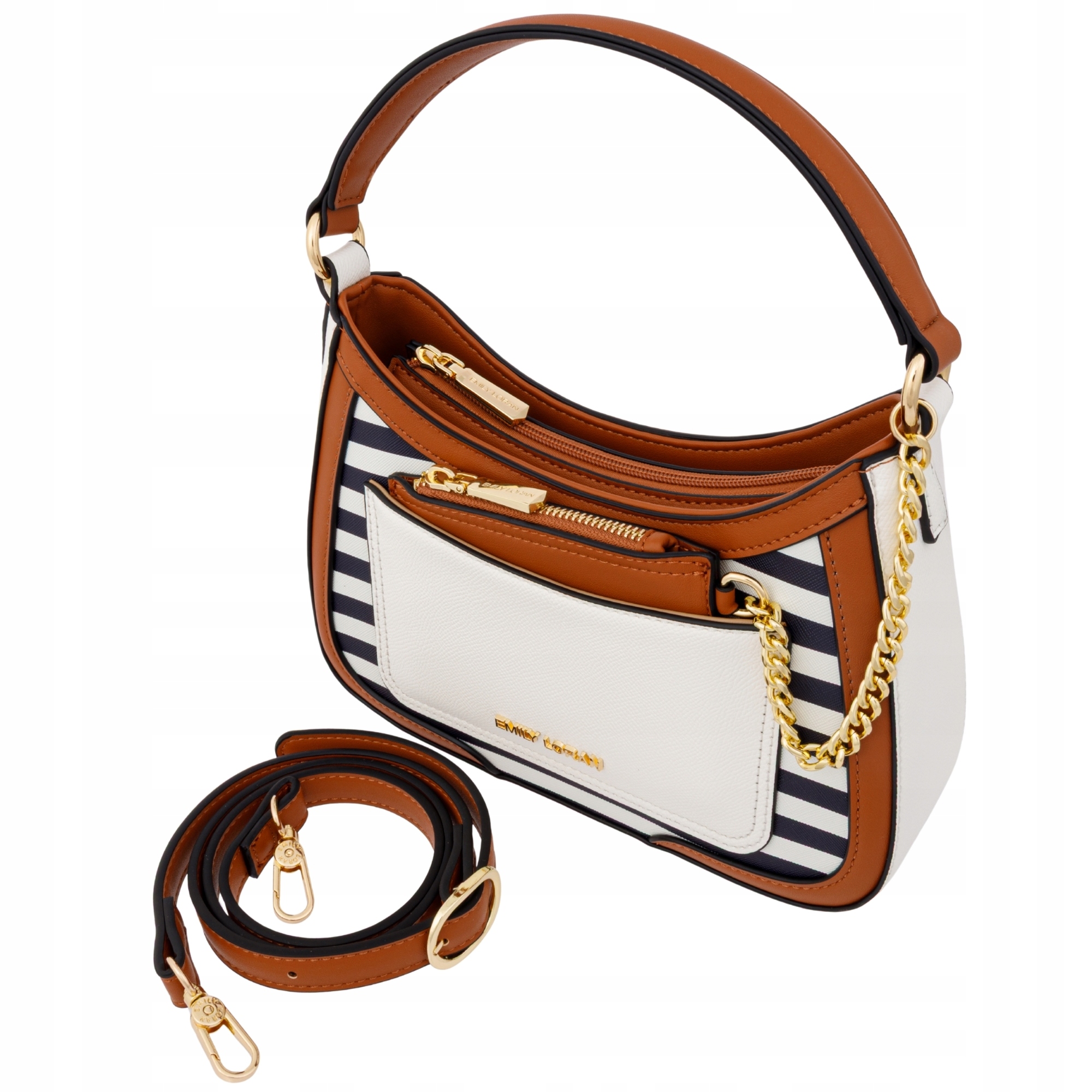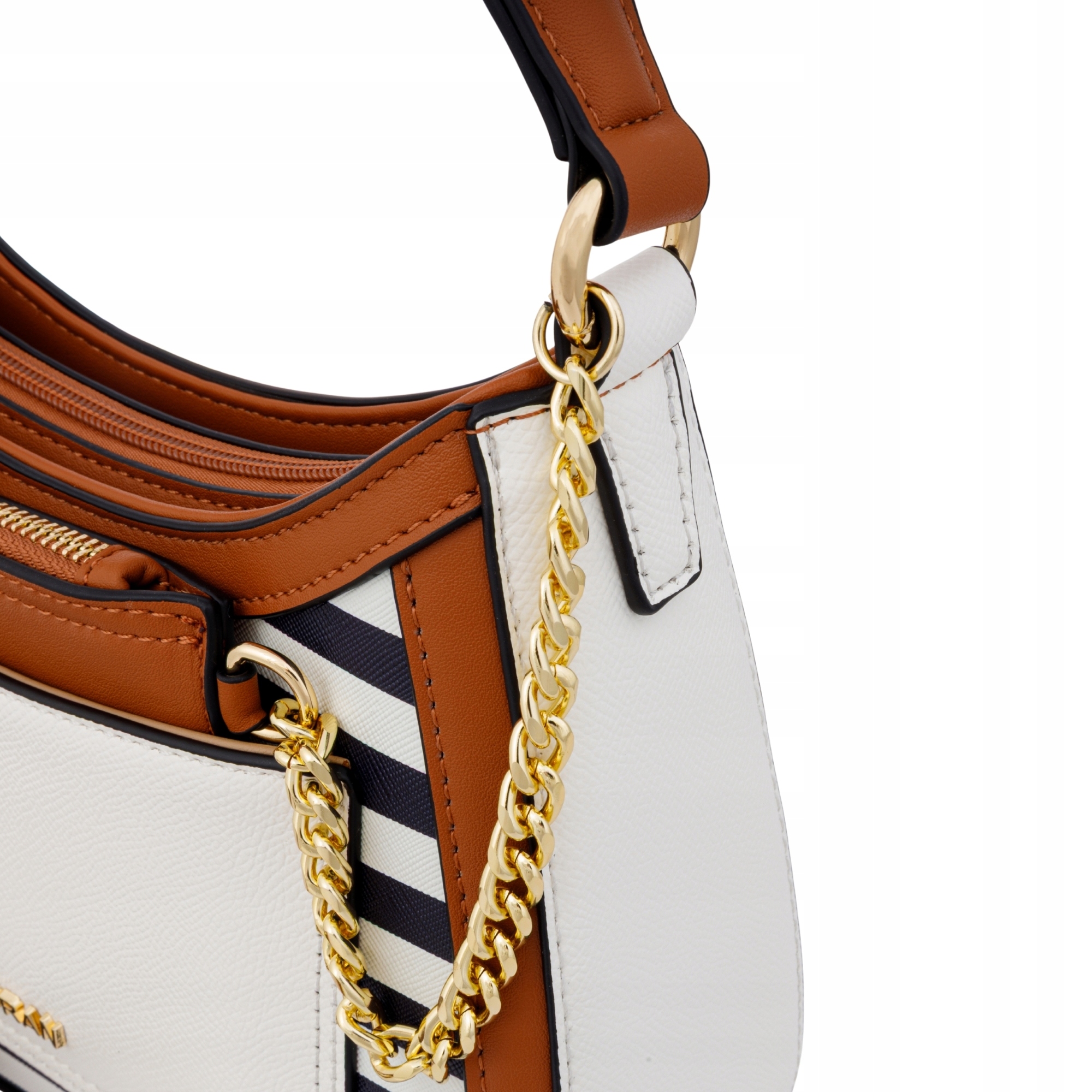 Dodaj do swojej garderoby odrobinę marynarskiego stylu z elegancką torebką z kolekcji EMILY LORAN. Model w biało-granatowe paski z brązowymi elementami i wykończeniem w postaci złotego łańcuszka to idealne połączenie klasyki i nowoczesnego designu. Świetnie sprawdzi się zarówno na co dzień, jak i na wyjątkowe okazje.