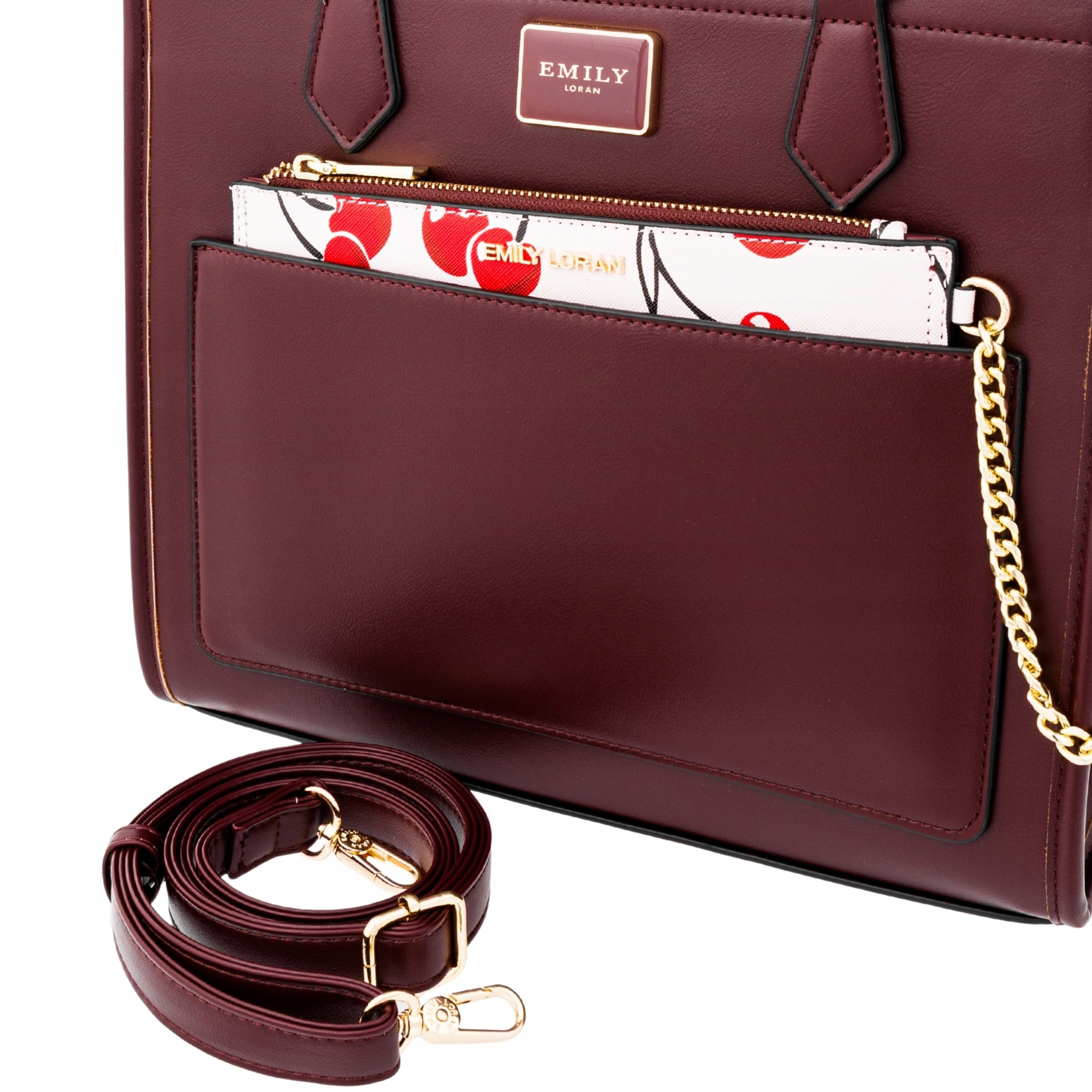 - ✅ Złote detale: eleganckie logo EMILY LORAN, suwak i łańcuszek w kolorze złota dodają luksusowego charakteru.