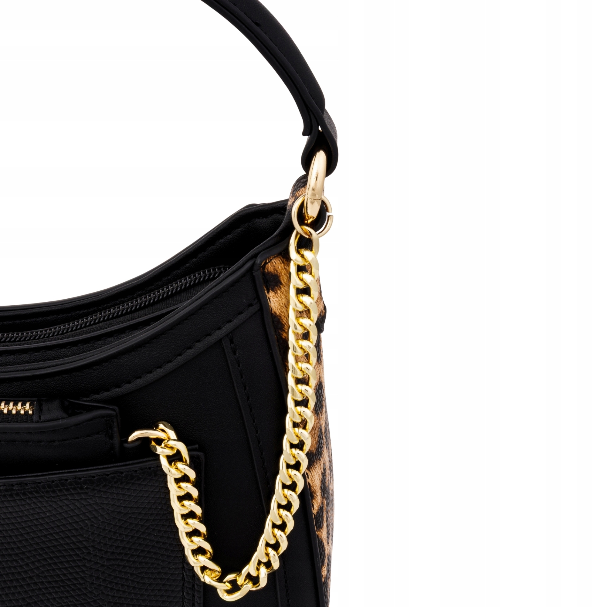 Torebka damska czarna z kosmetyczką w panterkę elegancka z łańcuszkiem