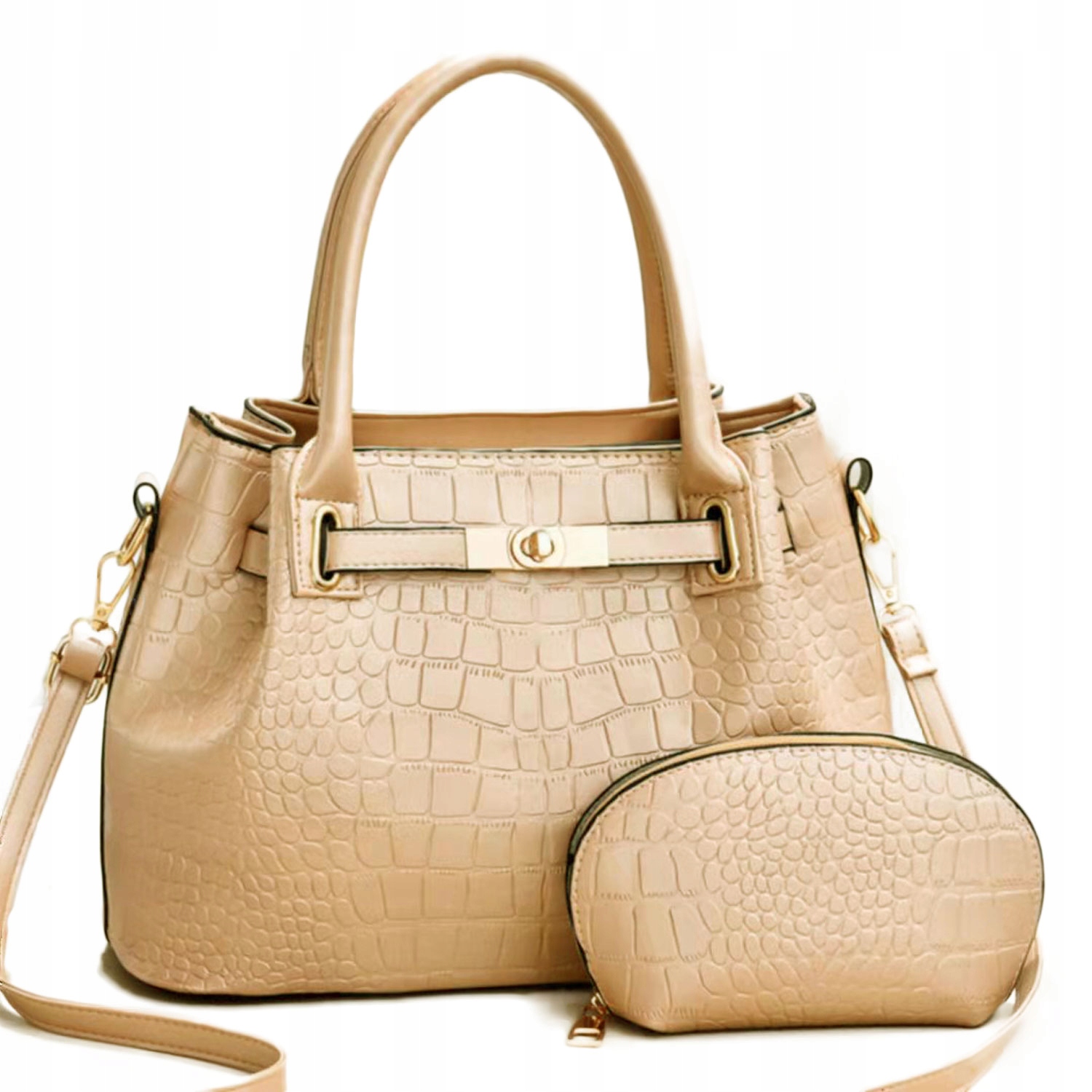 Torebka złota ekoskóra kuferek z kosmetyczką