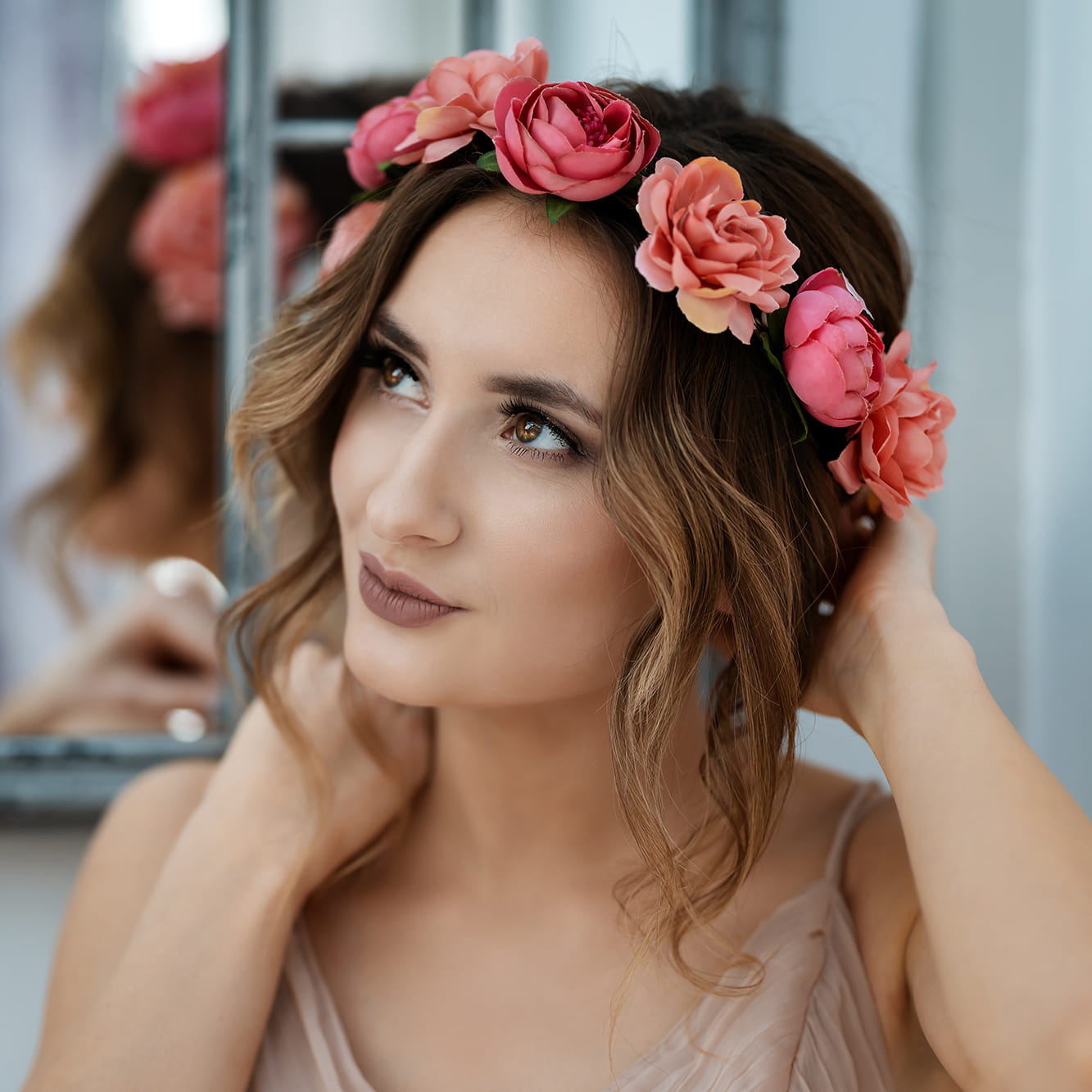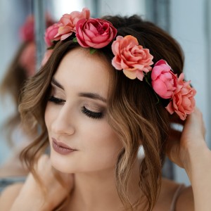 Wianek duże różowe kwiaty piwonie Boho