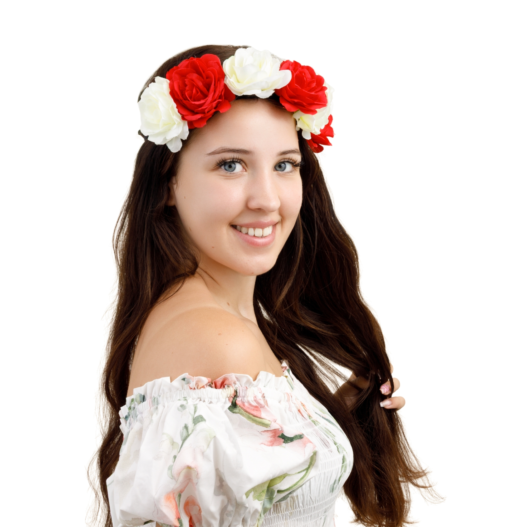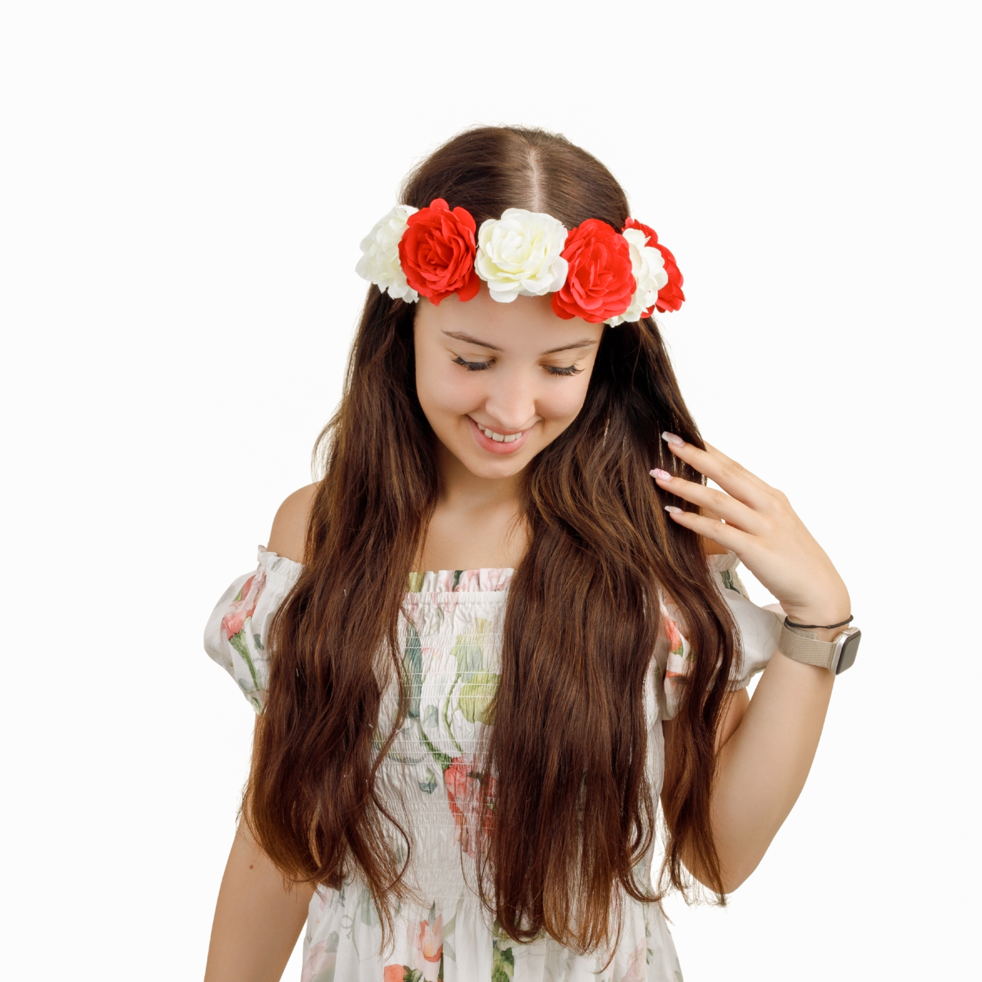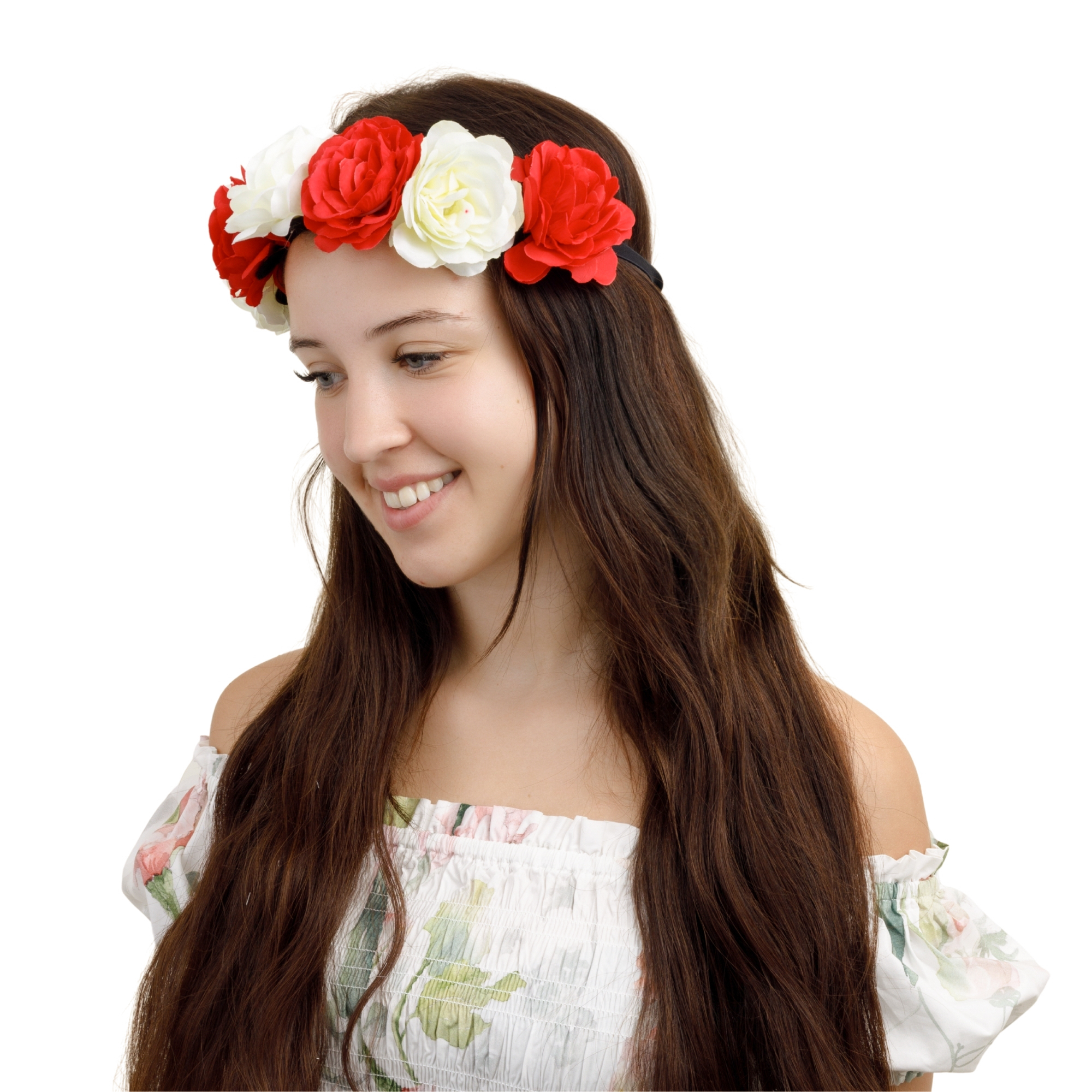 Wianek kibicki biało-czerwony na głowę duże kwiaty na gumce mecz stadion
