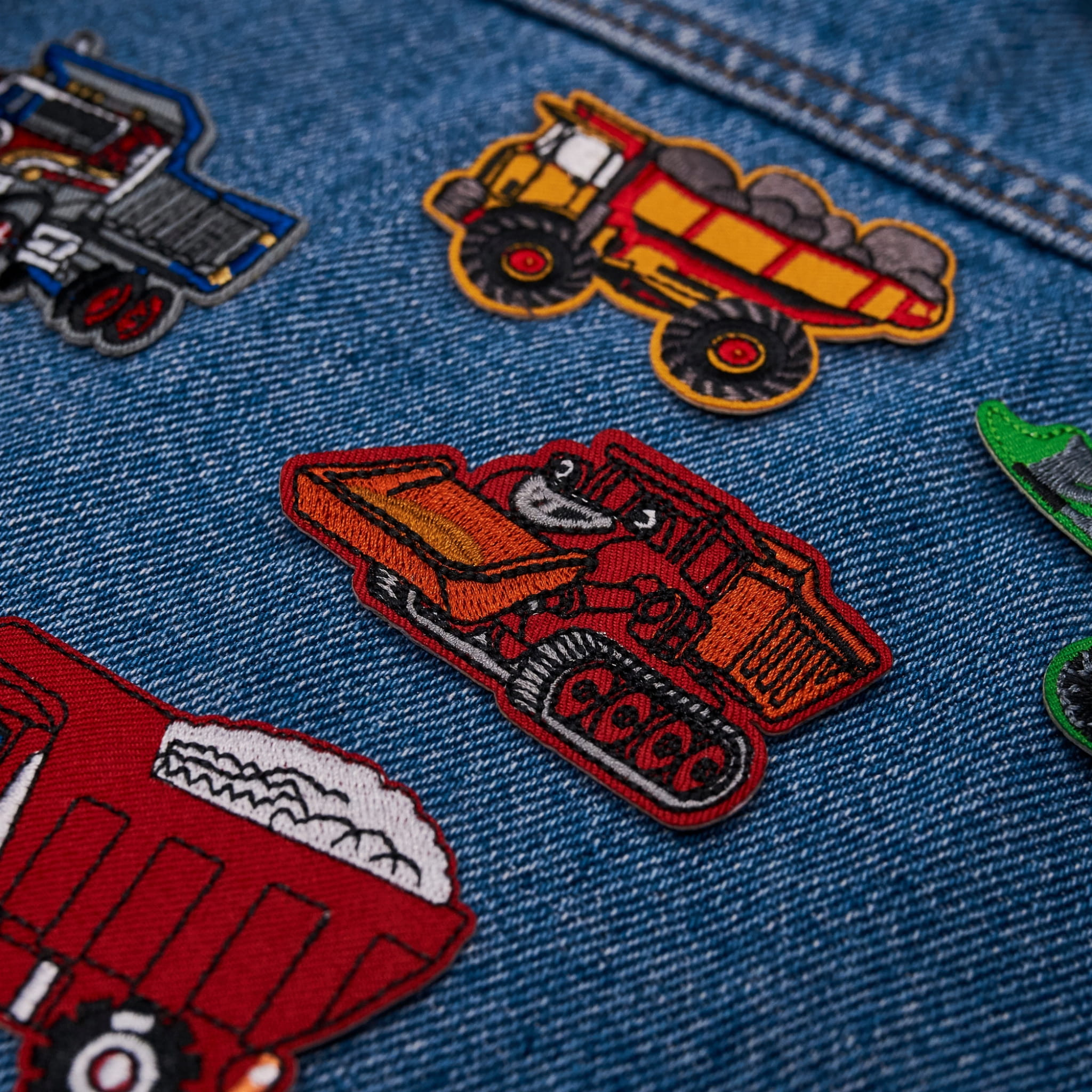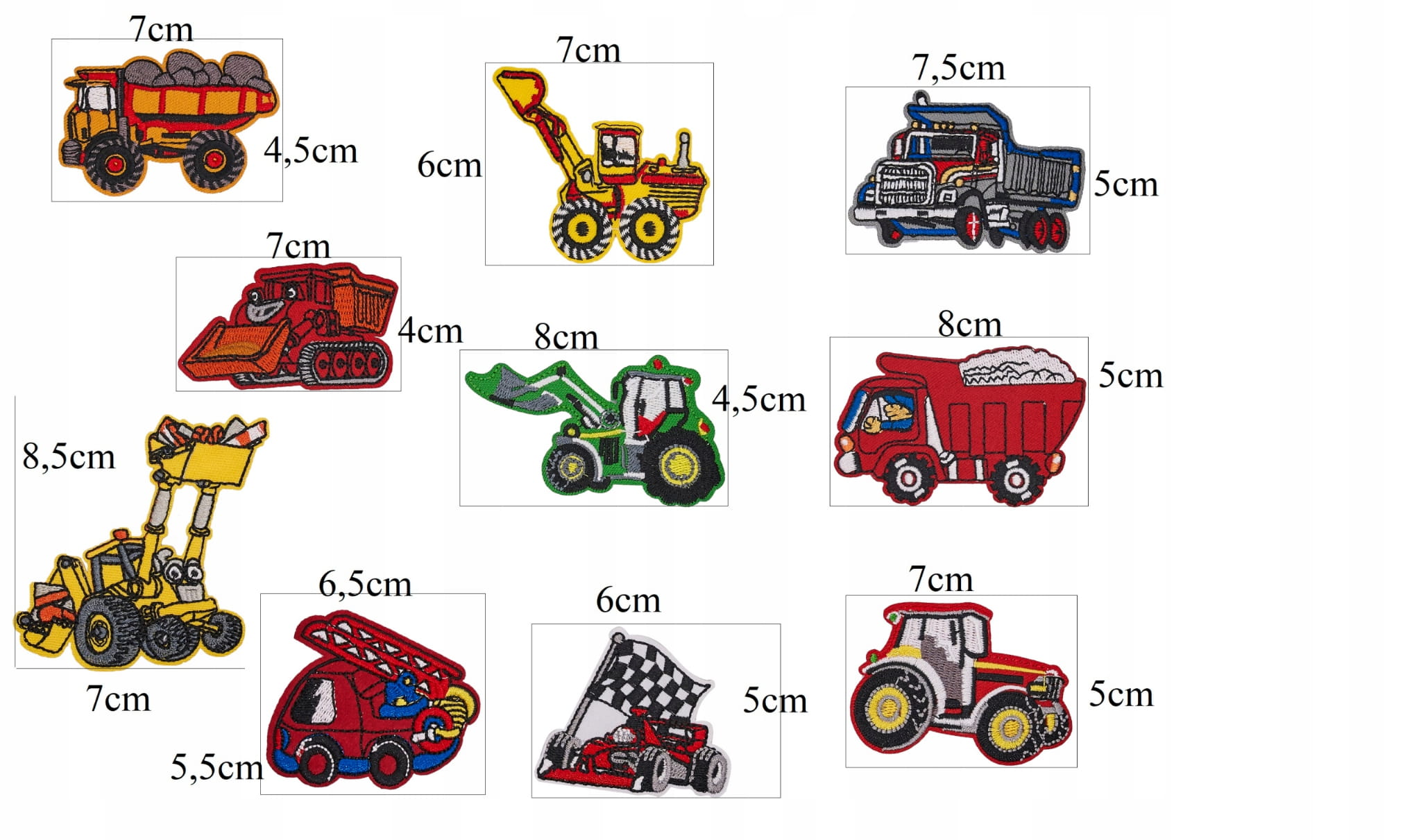 ZESTAW 10szt. AUTA traktory koparki naszywki TERMO