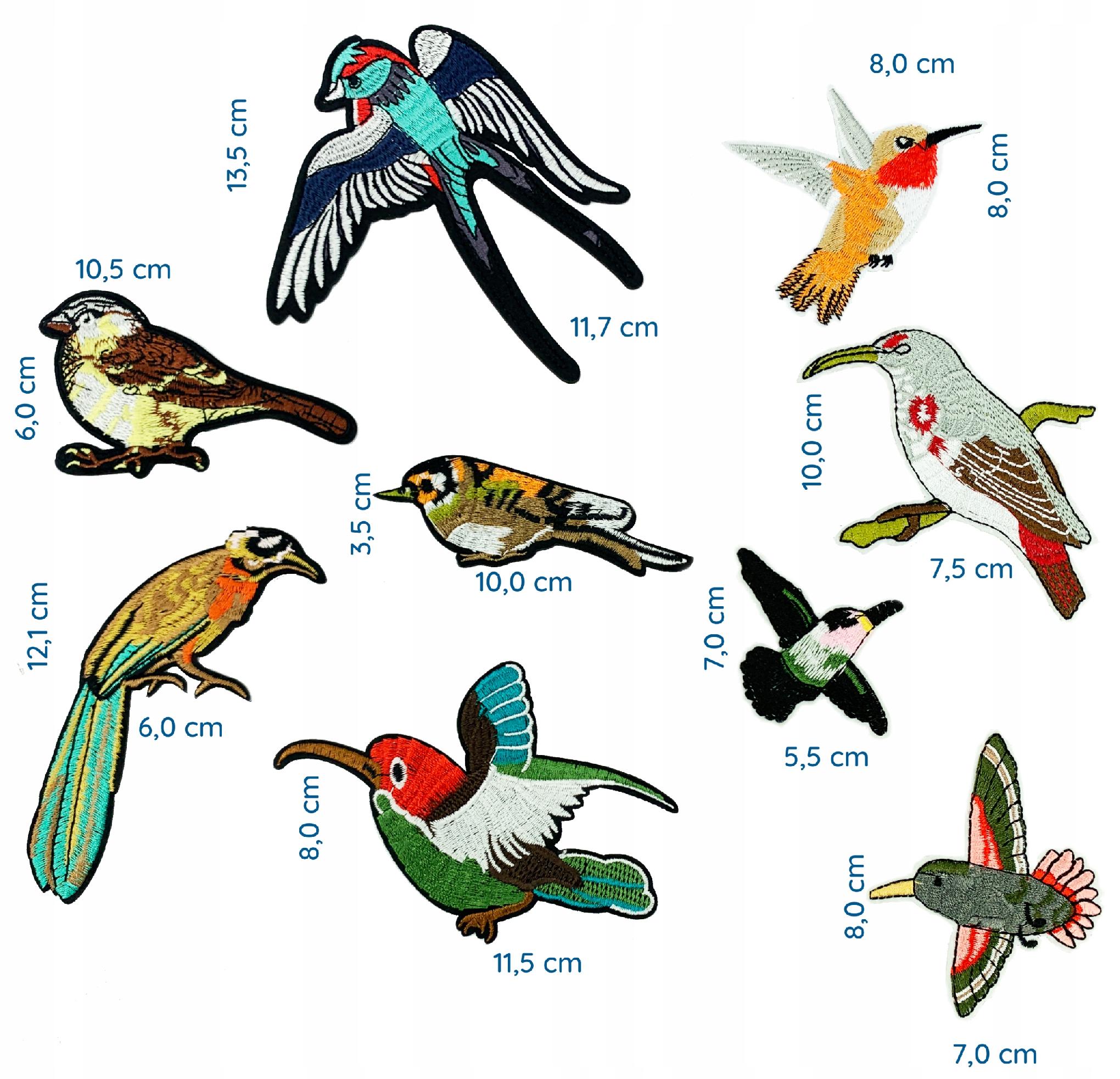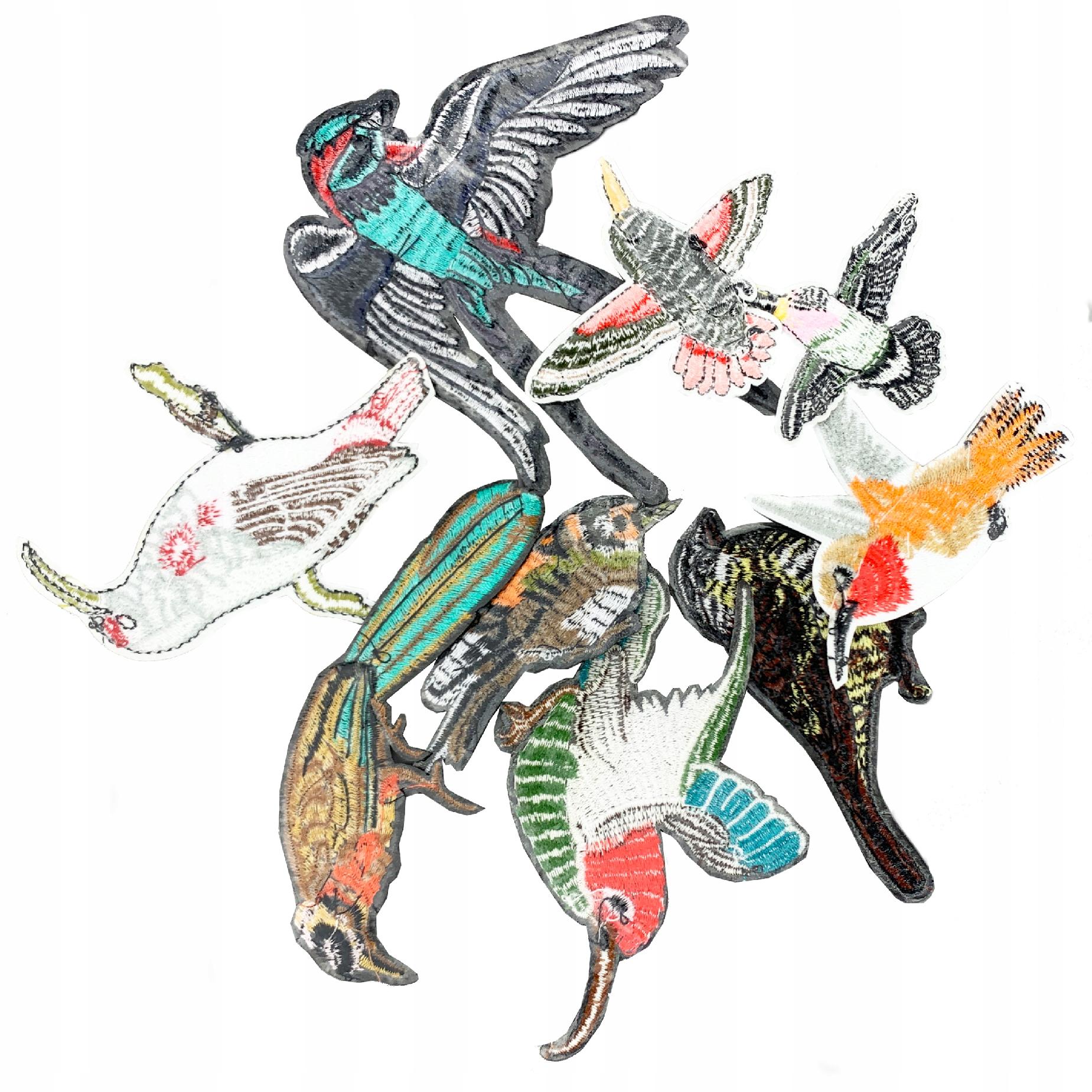 ZESTAW 9 Naszywki TERMO naprasowanki Ptaki Haft