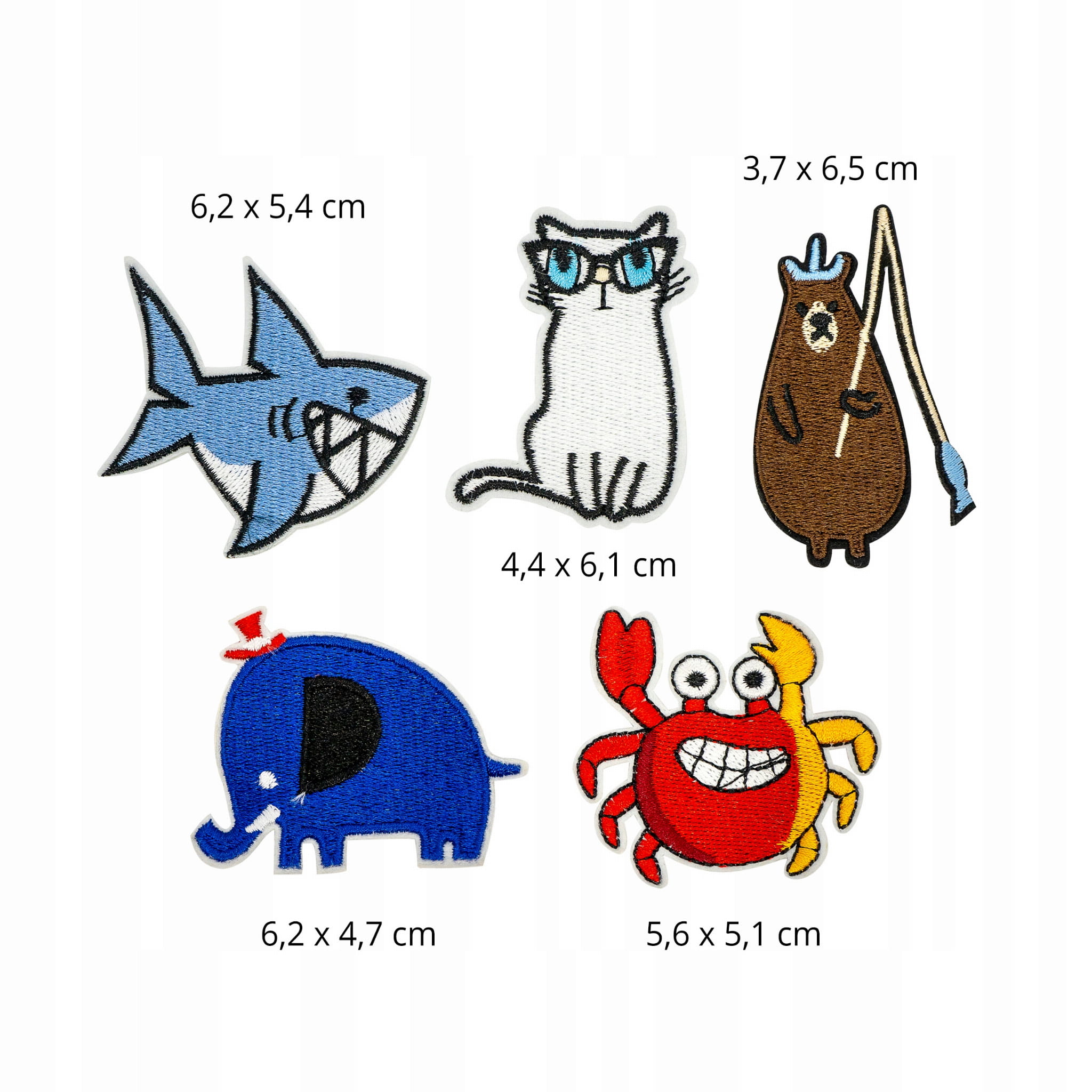 Motyw: zwierzaki (rekin, kot, niedźwiedź, słoń, krab)