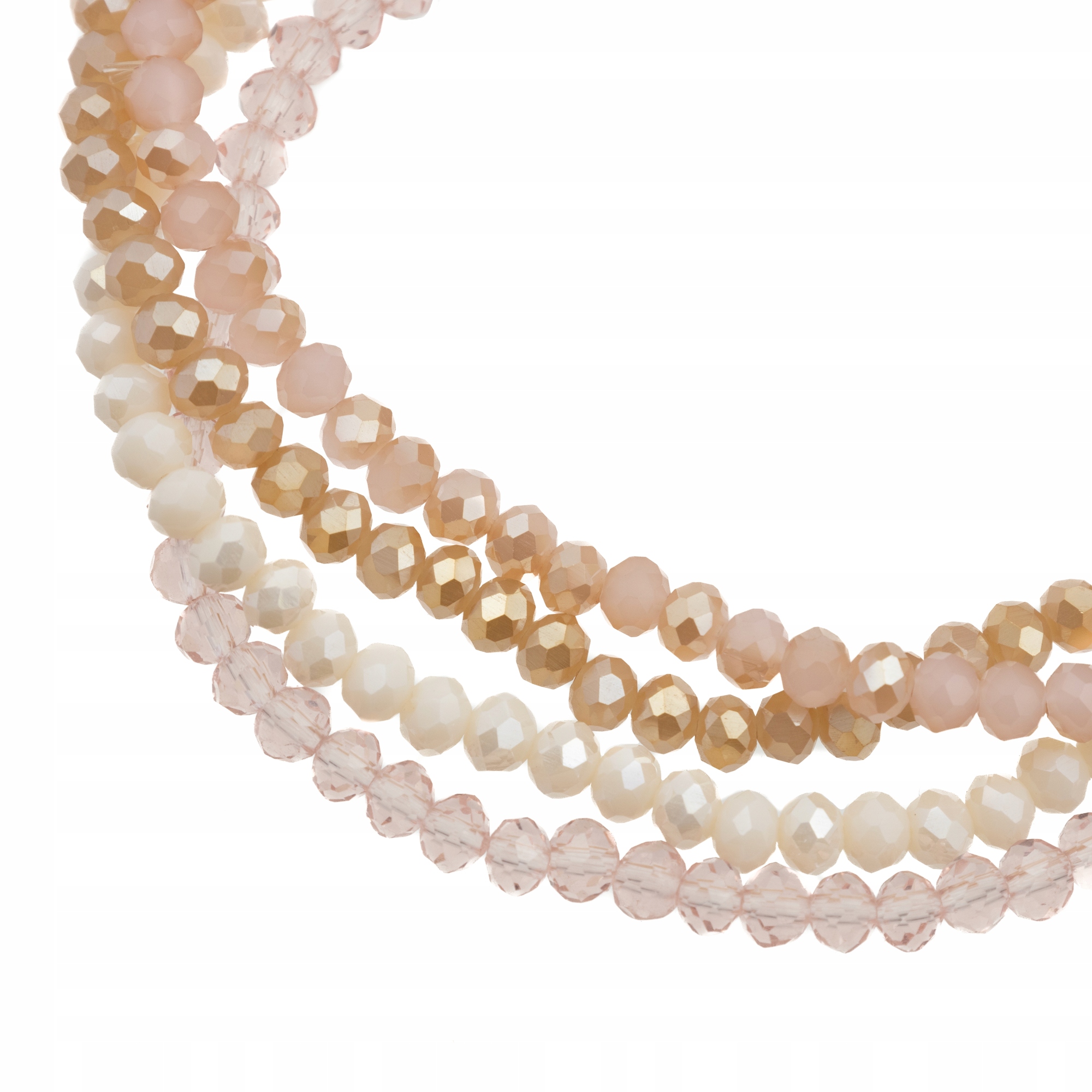 Zestaw 4 bransoletek z drobnych koralików – pastelowy róż & nude