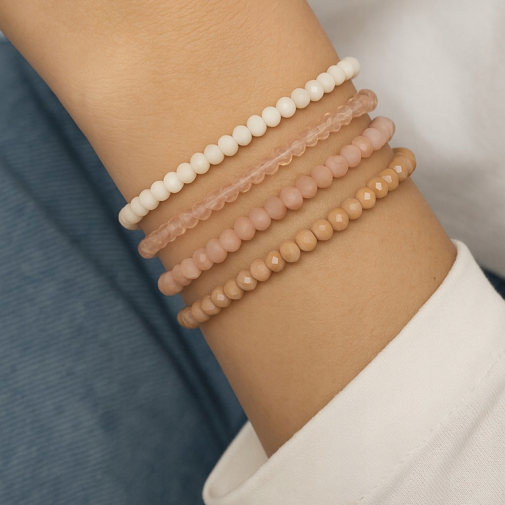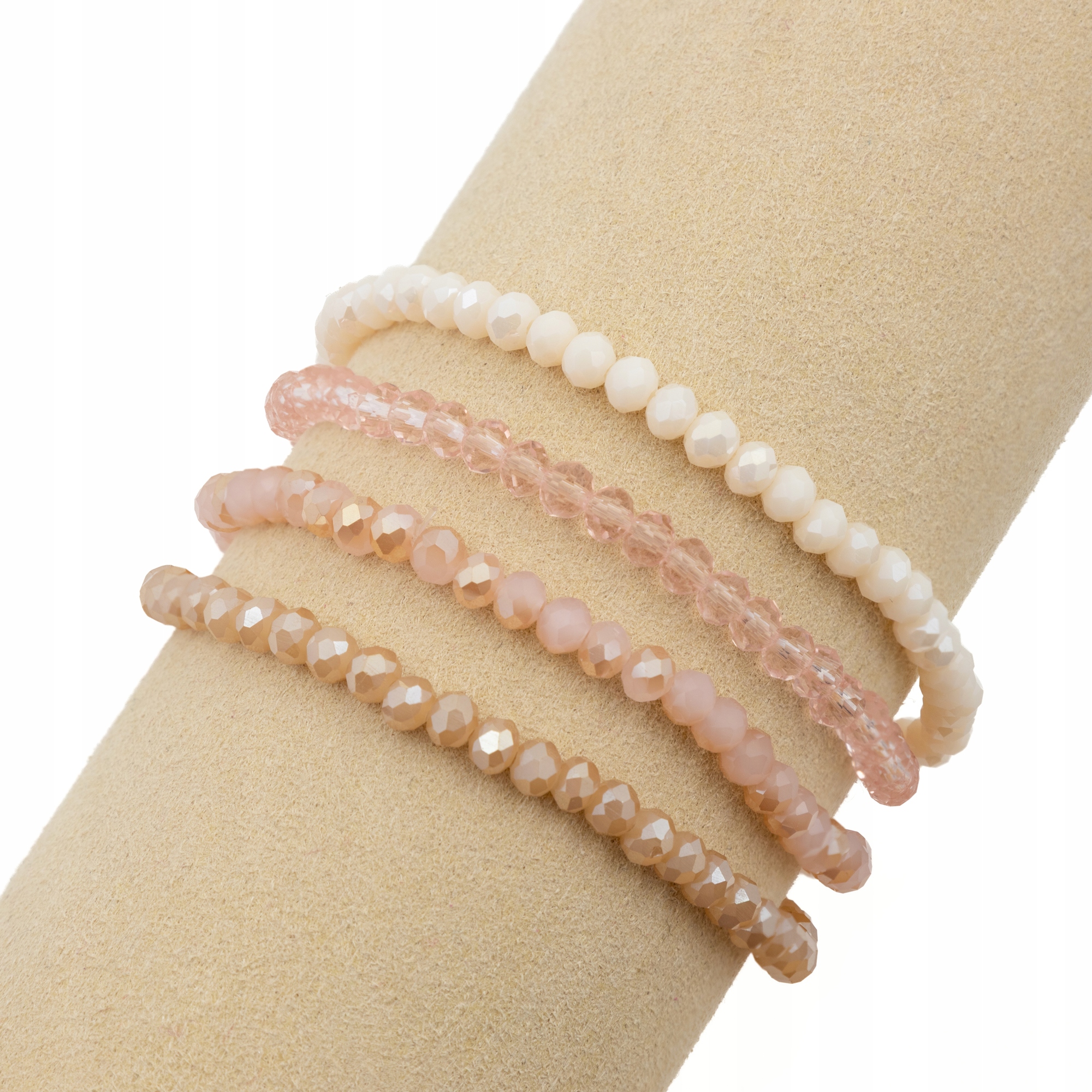 - Zestaw zawiera 4 bransoletki w modnych odcieniach nude, beżu i pudrowego różu