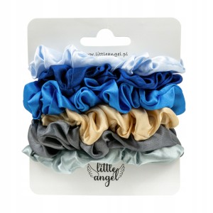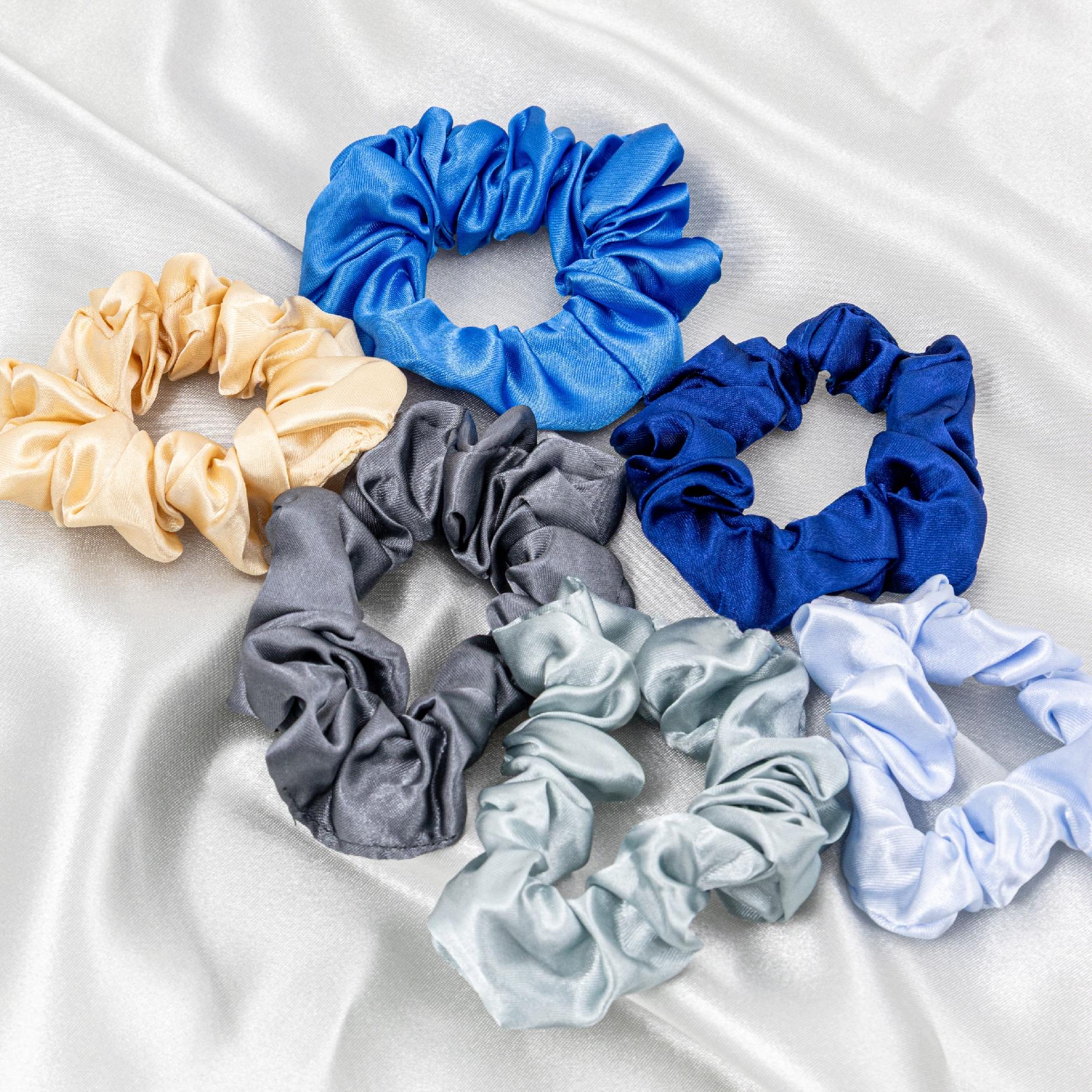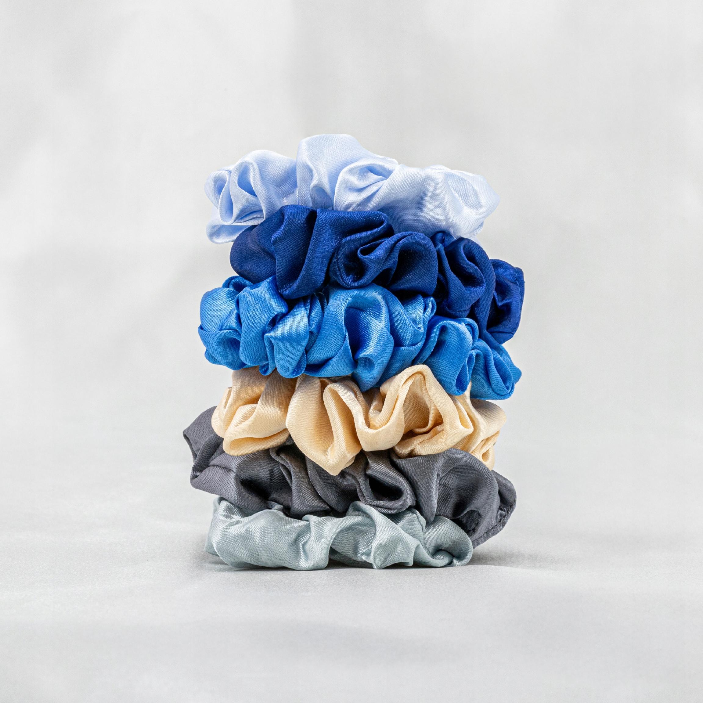 Zestaw 6 satynowych gumek scrunchie - niebieskie szare beżowe frotki