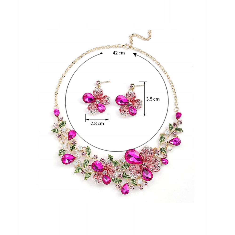 Zestaw Naszyjnik i kolczyki różowe kwiaty cyrkonie