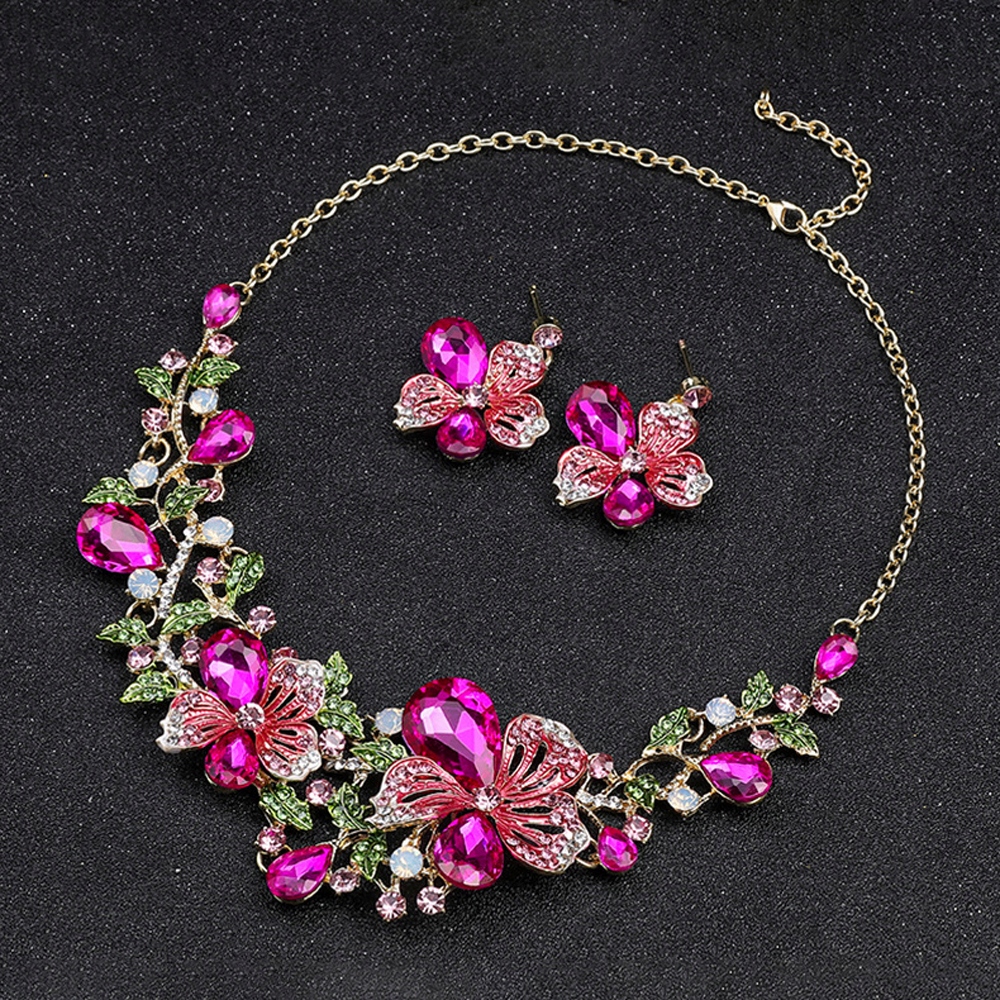 Naszyjnik i kolczyki zdobione kolorowymi cyrkoniami