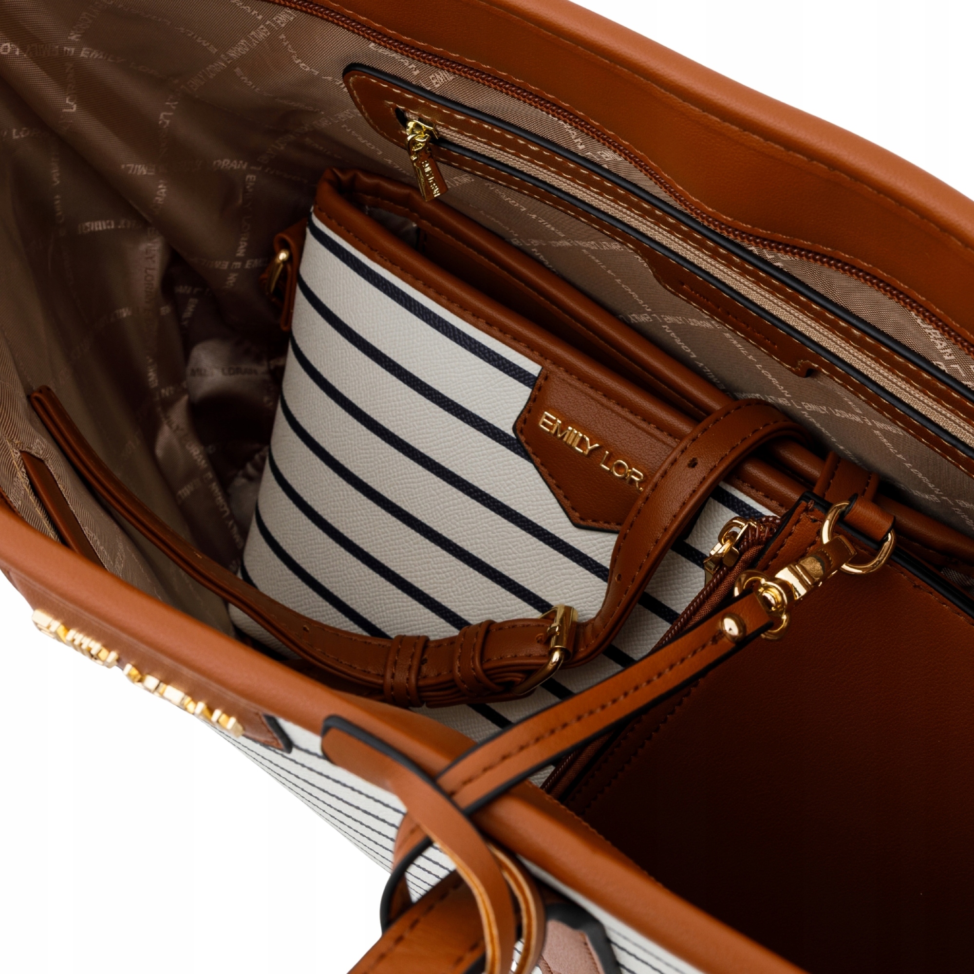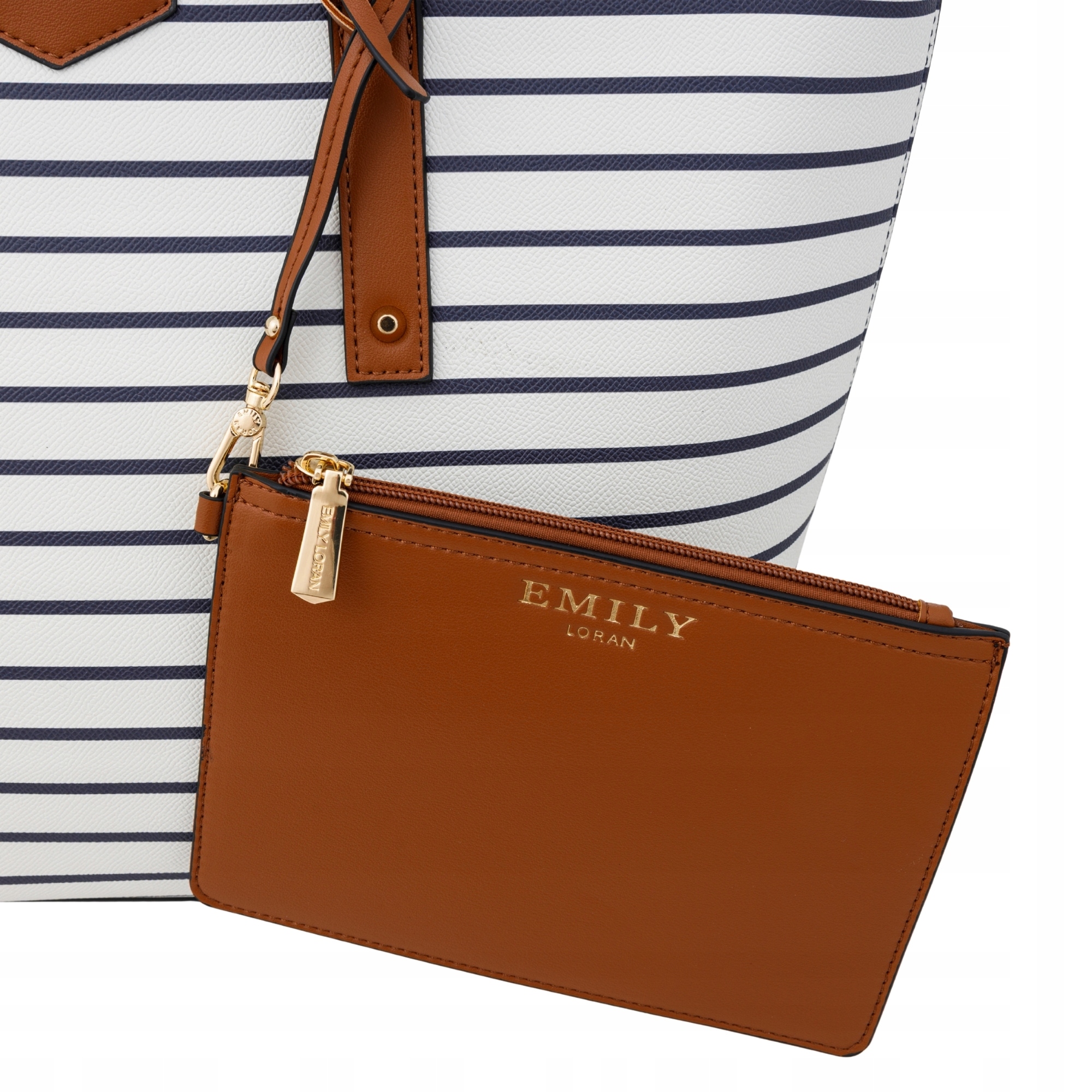 Zestaw Toreb Emily Loran w Paski Shopper Torebka na Ramię i Kopertówka 3w1