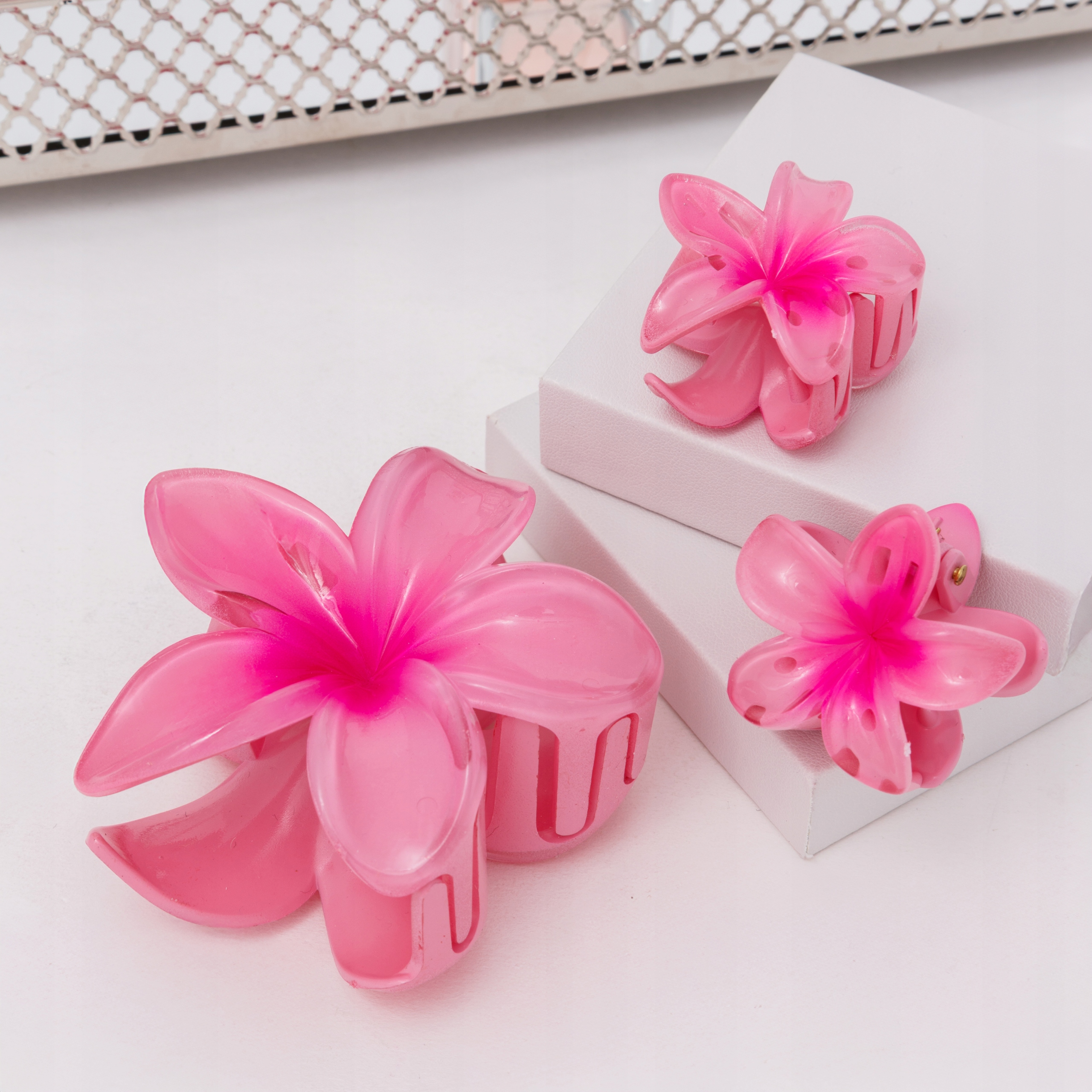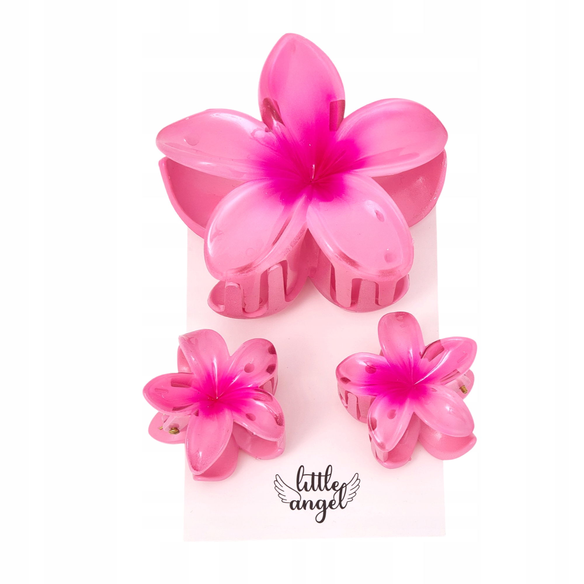 Wprowadź do swojej fryzury nutę egzotyki i koloru z zestawem uroczych spinek w kształcie różowych kwiatów od marki Little Angel!