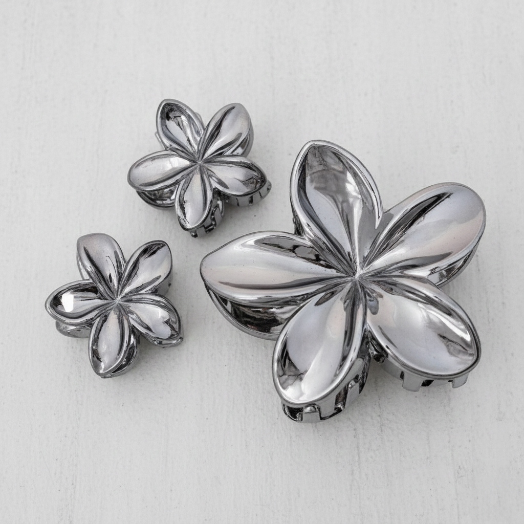 Zestaw spinek kwiaty czarne - lekkie metalizowane klamry do włosów