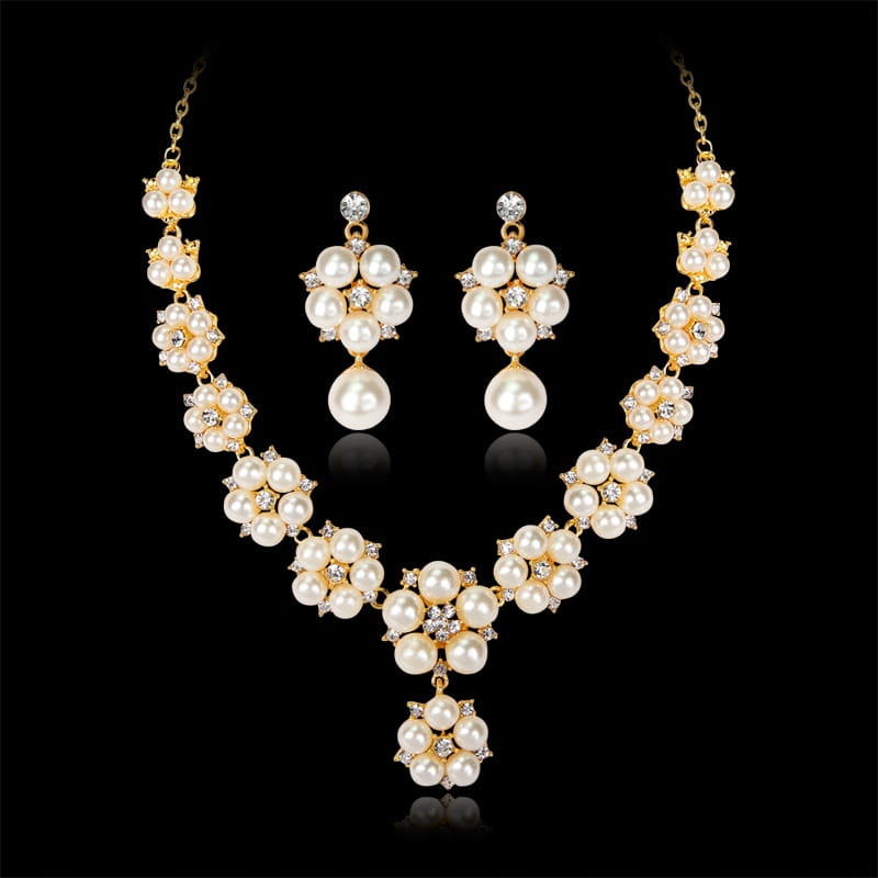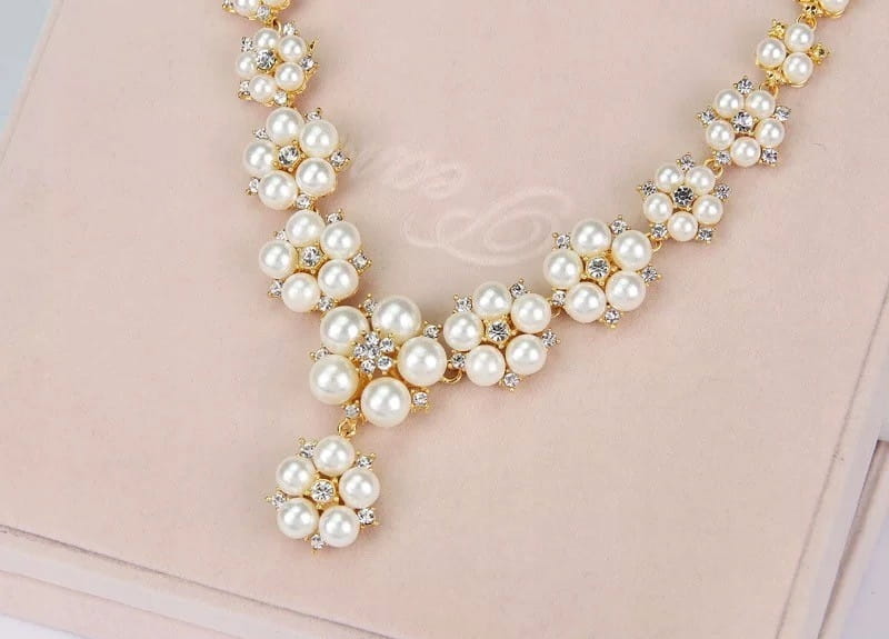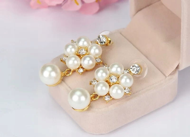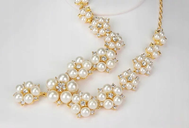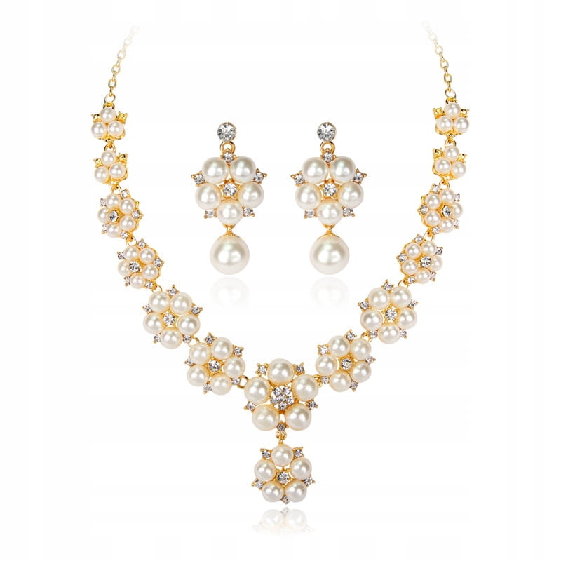 Elegancki komplet biżuterii z cyrkoniami i perełkami