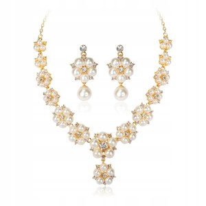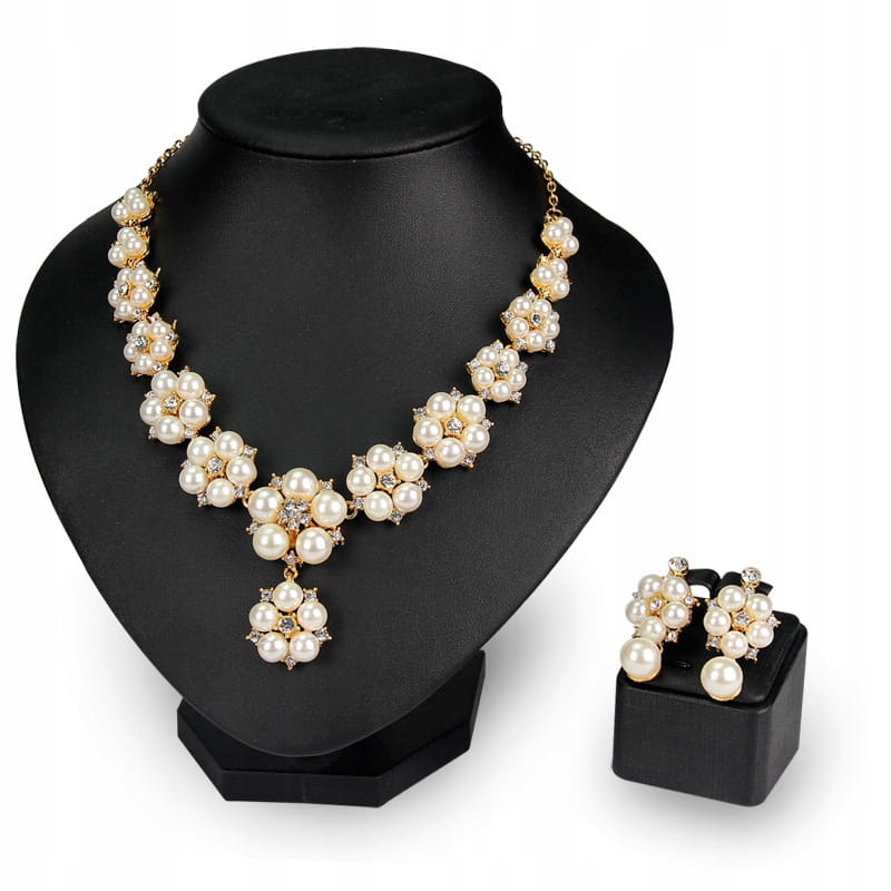 Złota Kolia zestaw z perłami naszyjnik i kolczyki
