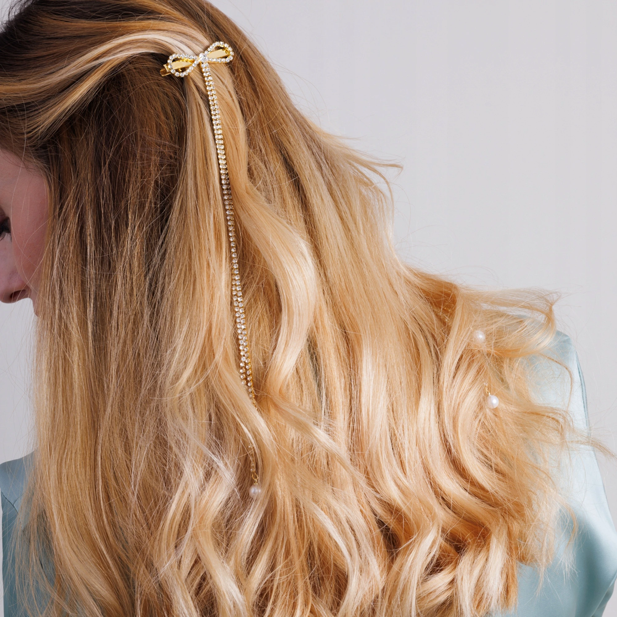 Podkreśl fryzurę eleganckim dodatkiem, który od razu przyciąga spojrzenia. Delikatne kokardki, długie zdobione łańcuszki i perełki tworzą wyjątkowy, kobiecy efekt idealny na ważne okazje.