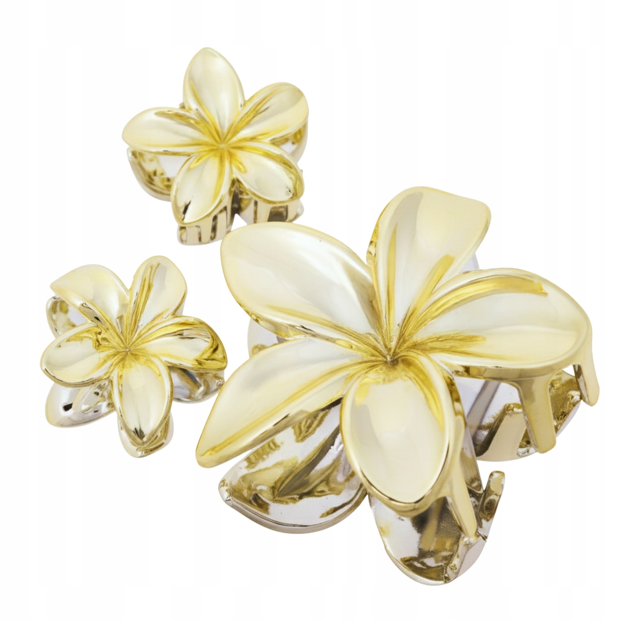 Złote spinki do włosów kwiaty - zestaw 3 szt klamry ozdobne - glamour